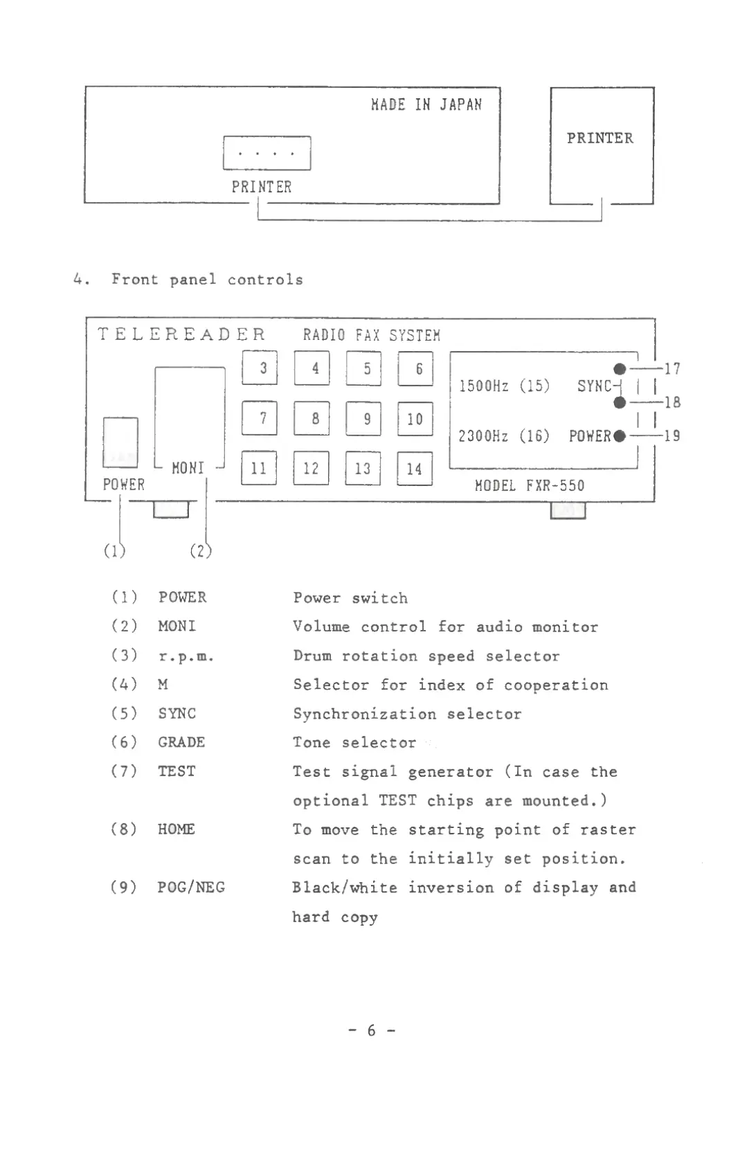 Tasco Telereader FXR-550 - Front Panel Controls and Operation; Control Identification