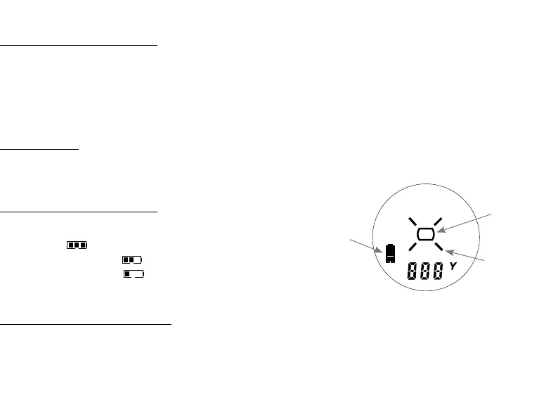 Your TASCO LASER RANGEFINDER’s LCD incorporates illuminated indicators that advise you unit of measure, when the laser is active, the battery