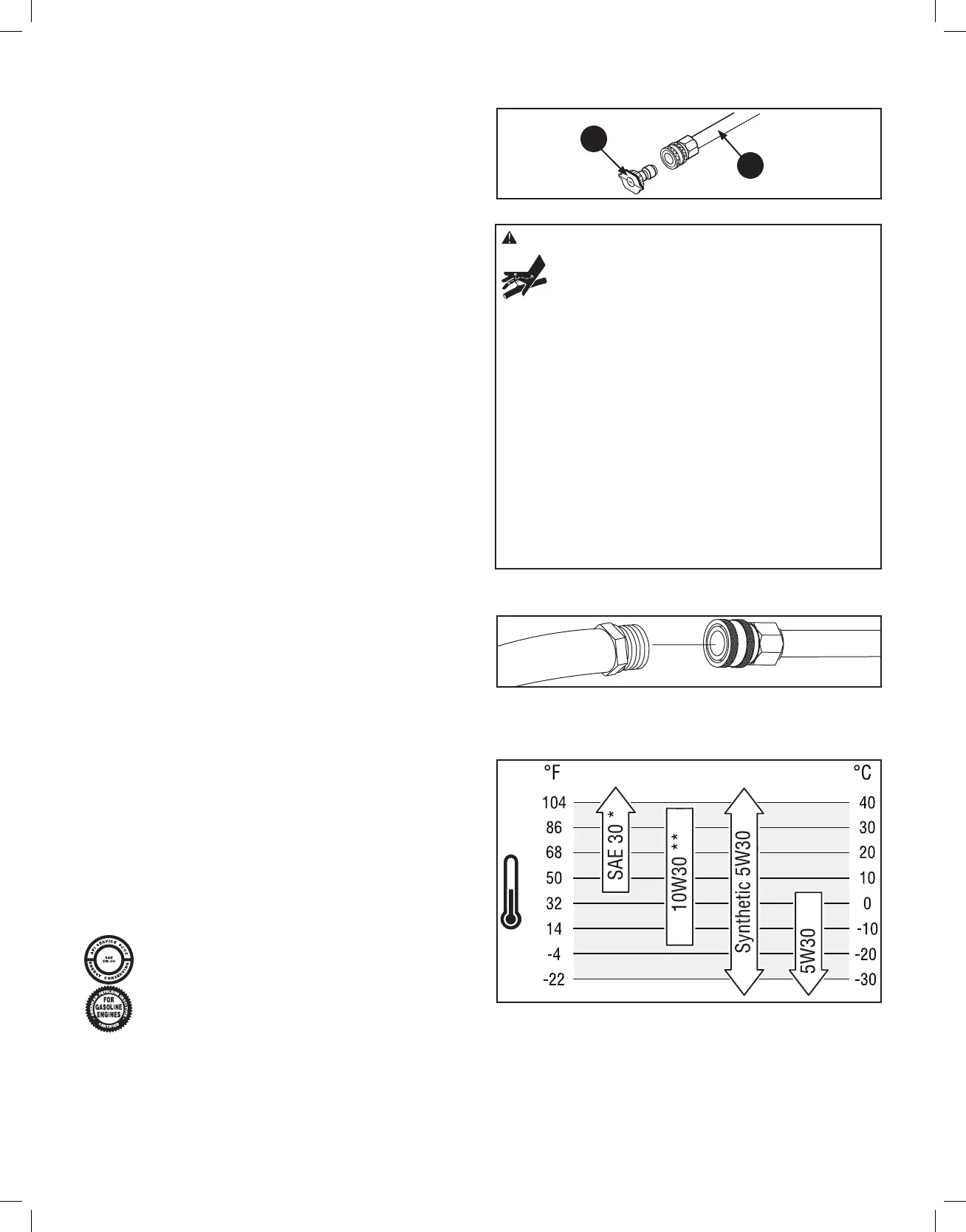 ** Above 80°F (27°C) the use of 10W30 may cause increased oil consumption.