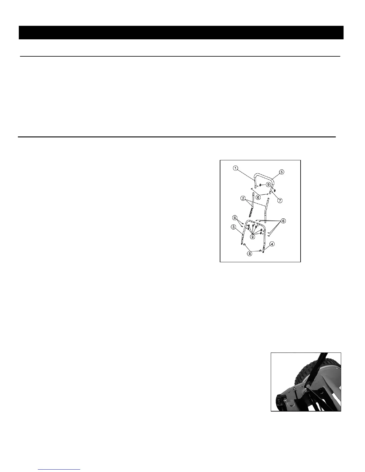 Insert the 2 center handle pieces (2) into the left and right side of the top handle (1) and secure with two 1 3/8in. bolts (6) ,