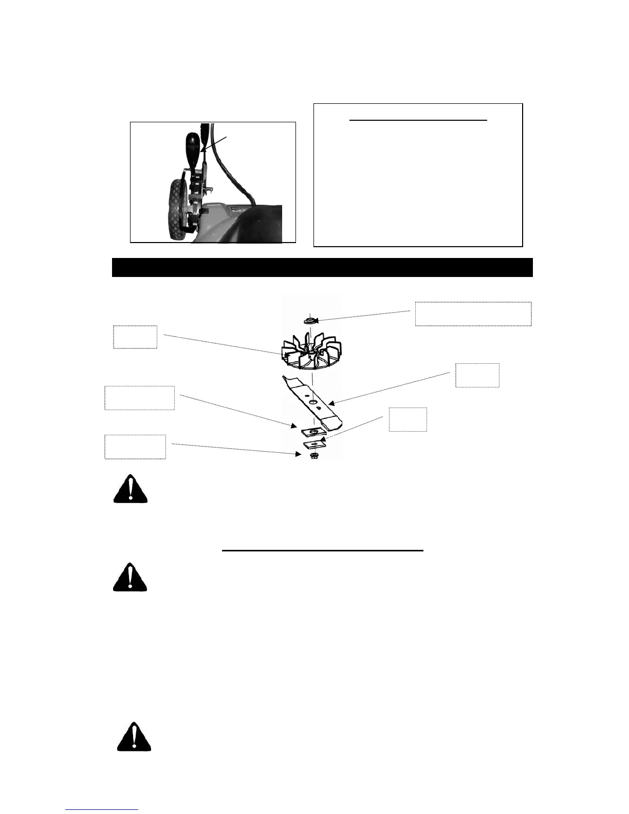 • Wedge a block of wood between the blade and mower deck to prevent the blade from turning