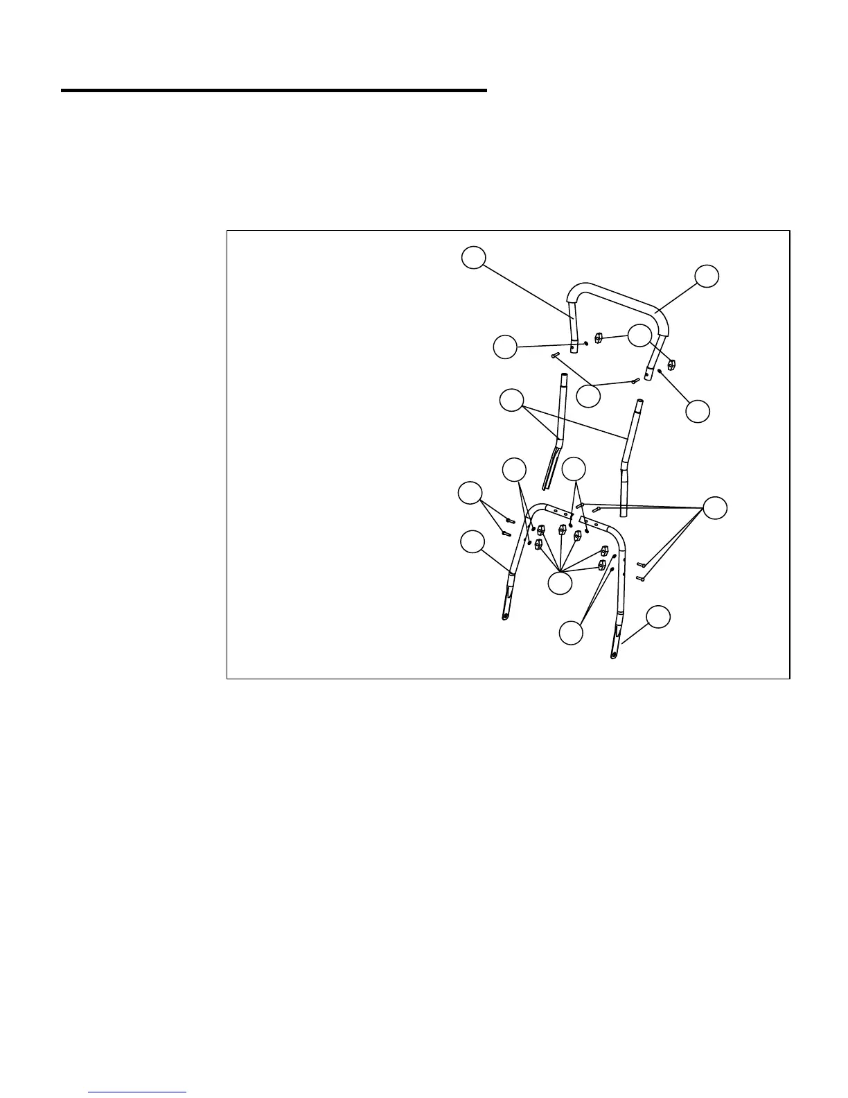 2. Connect the right lower handle (4) with the left lower handle (3) and secure with two 1-3/8in. bolts (6), flat