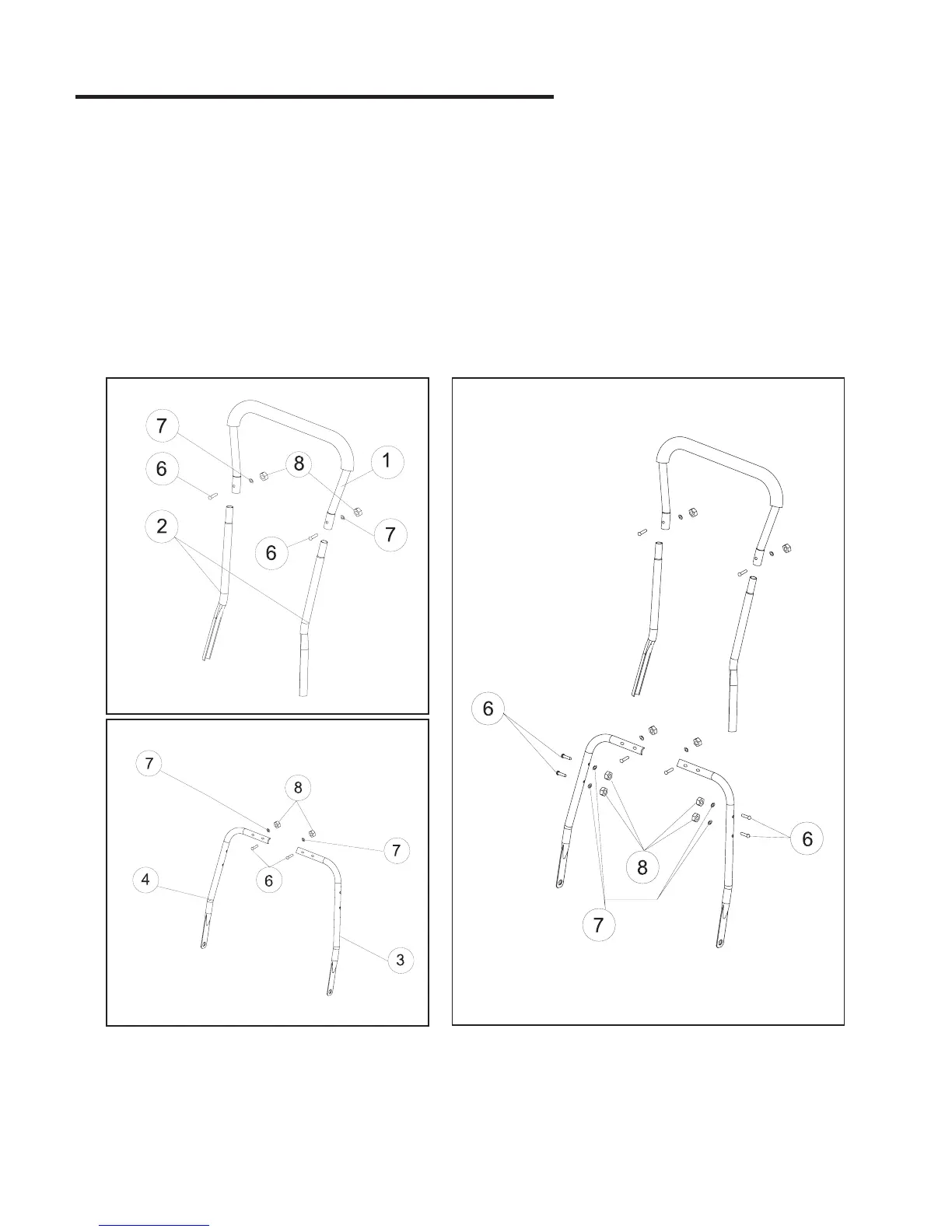 1. Insert the two center handle pieces (2) into the left and right side of the top handle (1) and secure with two