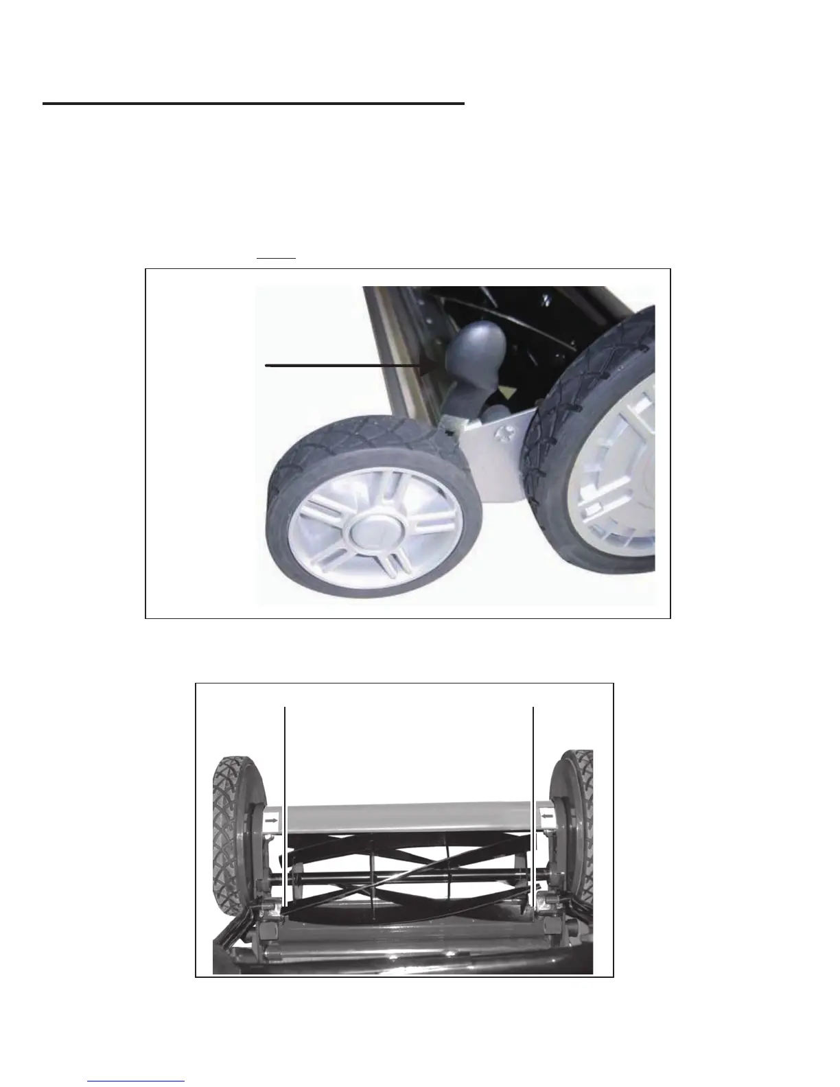 cutting heights are achieved by moving the adjustment levers to any stop between the highest and lowest positions.