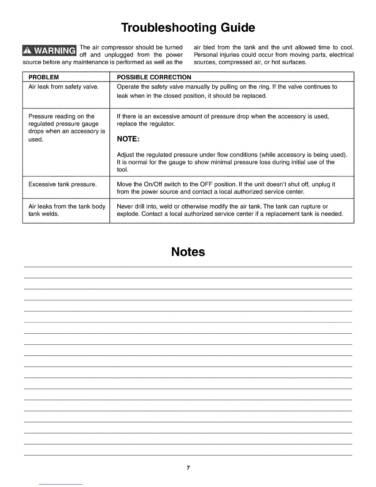 Never drill into, weld or otherwise modify the air tank. The tank can rupture or