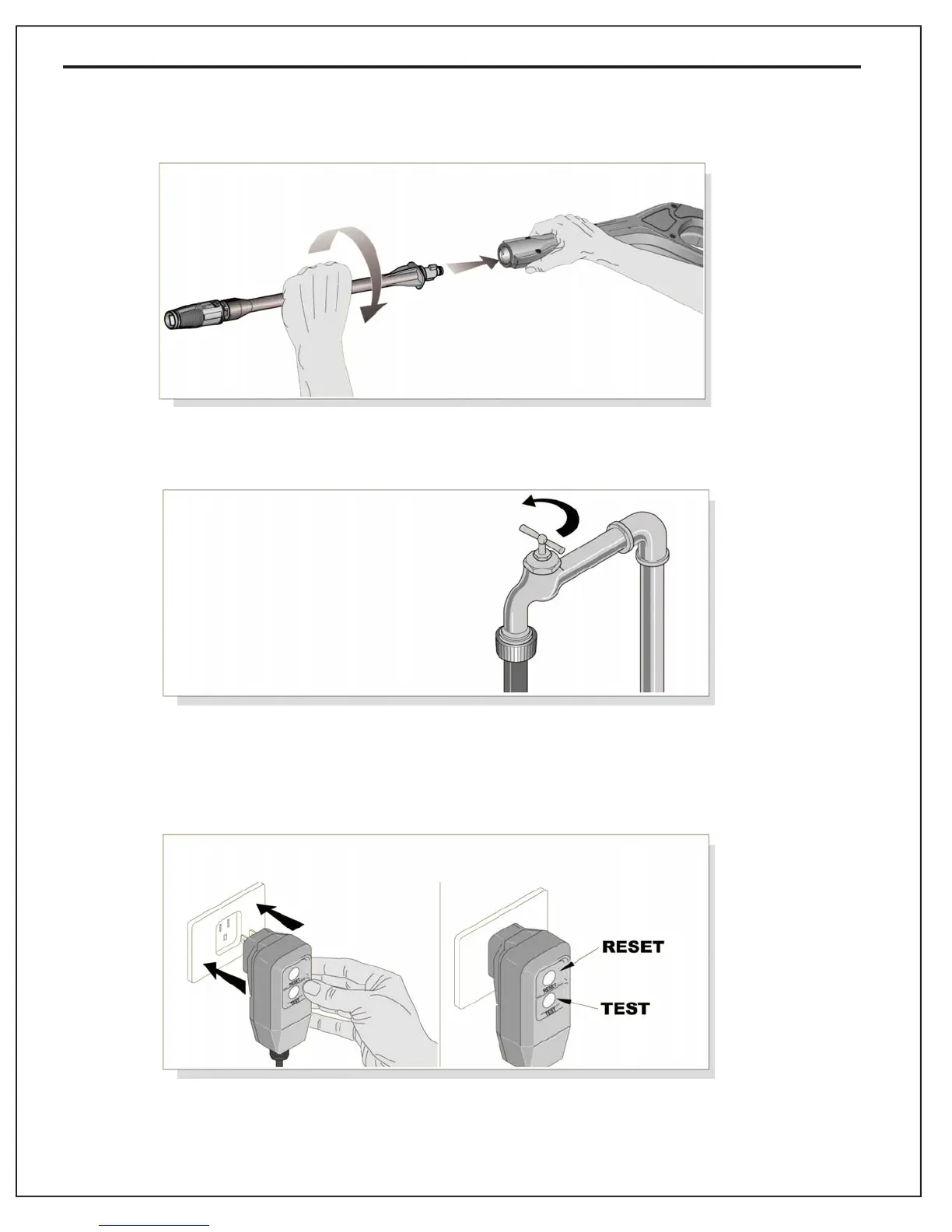 Plug GFCI into power receptacle. Firmly press and release the TEST