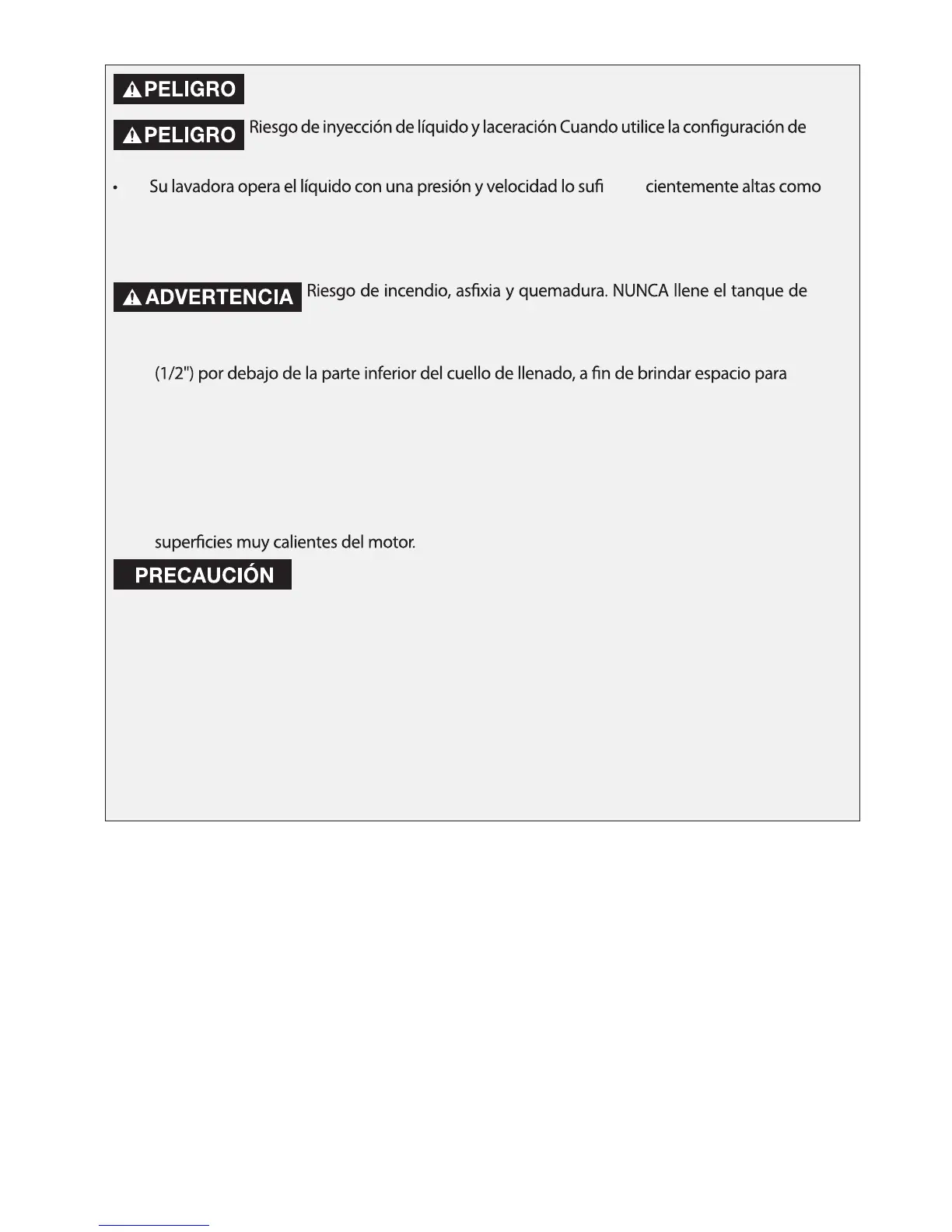 pueden provocar lesiones por inyección. NO TRATE LA INYECCIÓN DE LÍQUIDO COMO