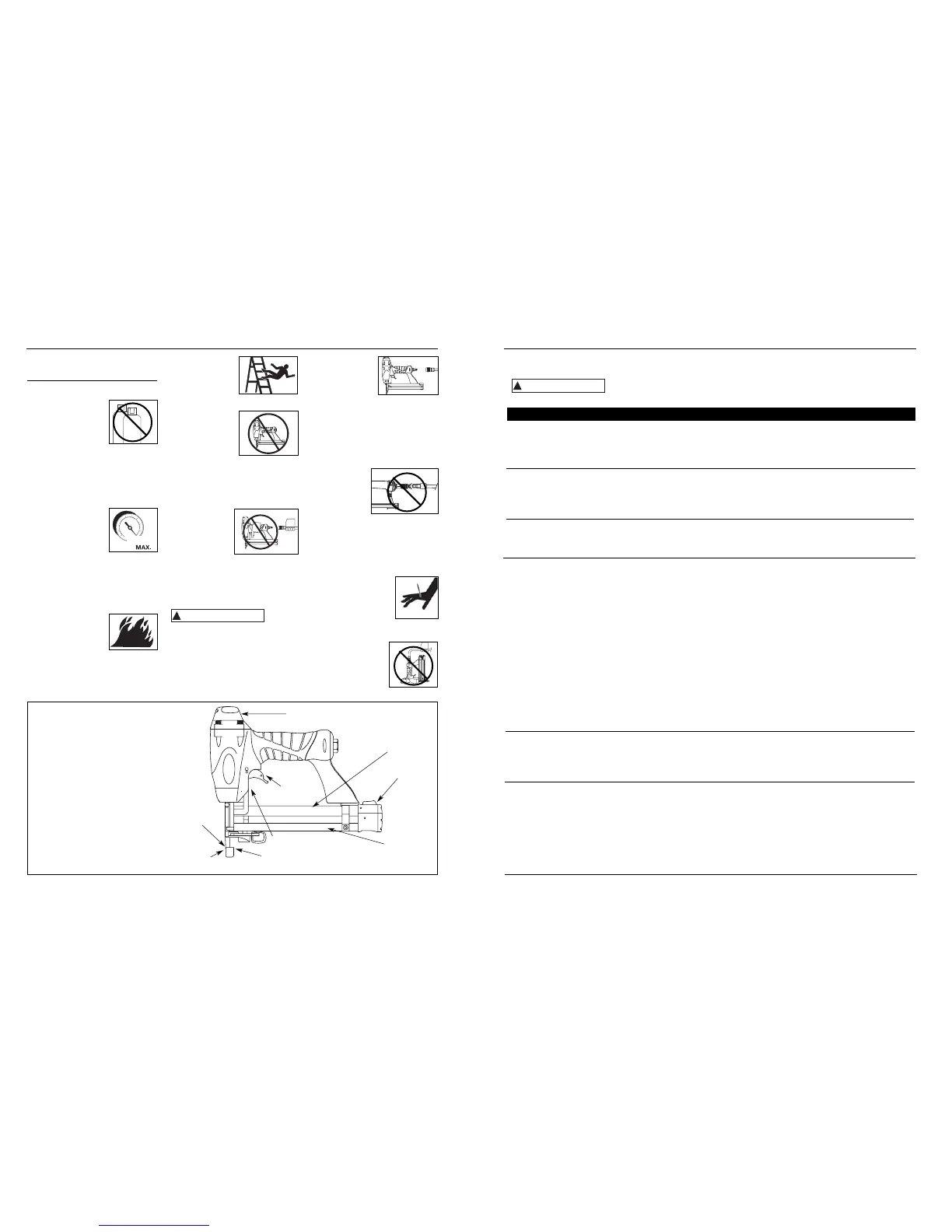 Cessez l’utilisation de la cloueuse immédiatement en cas des problèmes suivants, car il