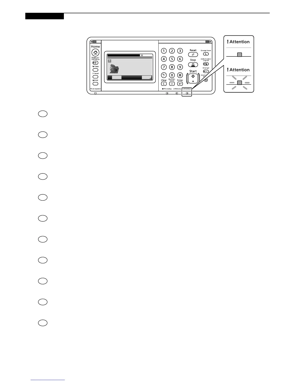 If an error occurs on the machine, the error message appears on the screen. Also the Attention indicator on the operation