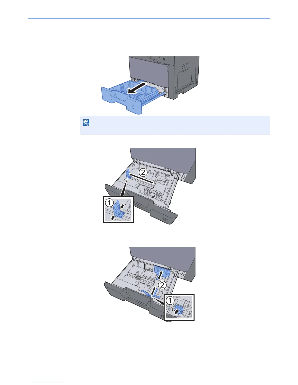 Load paper in the cassettes. The procedures here represent the cassette 1.