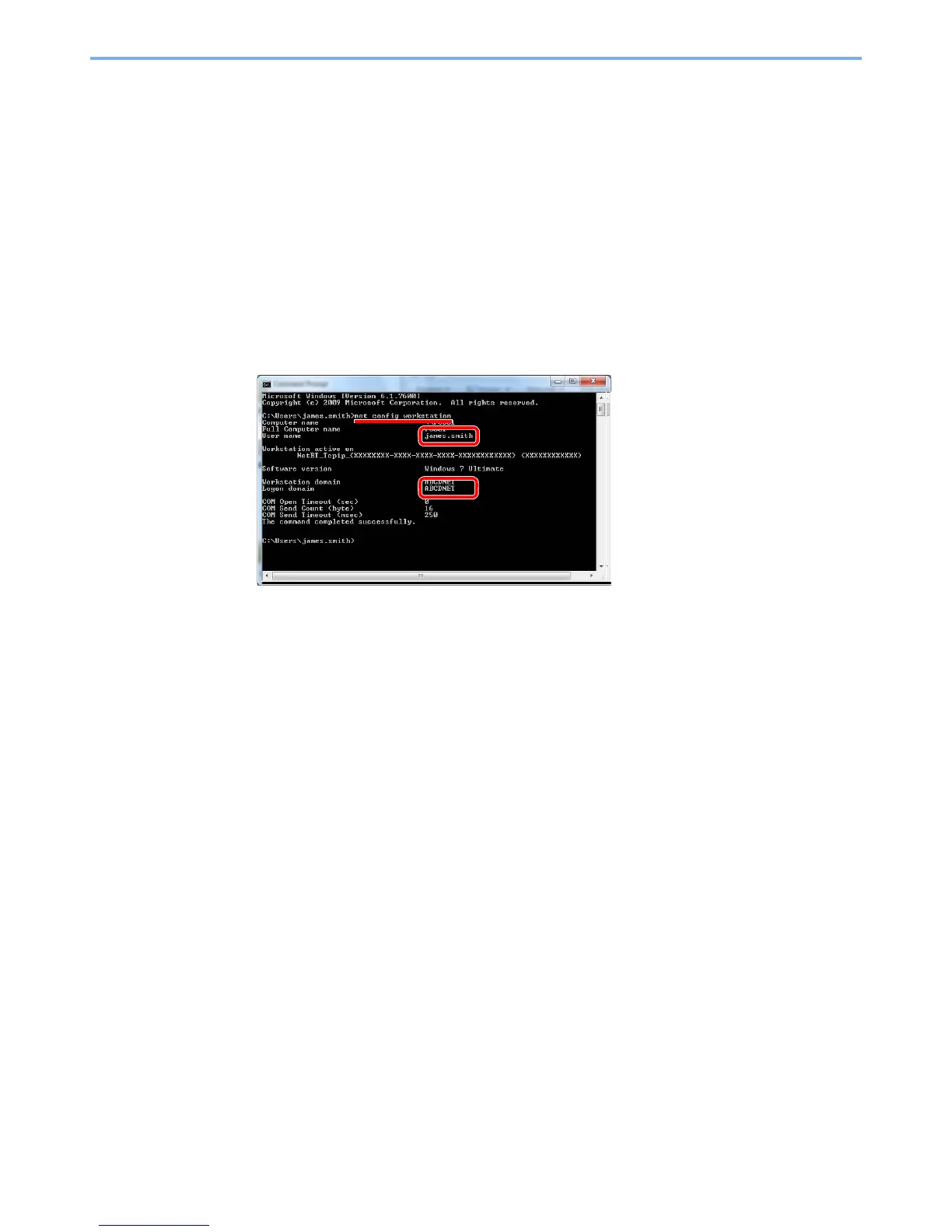 At the Command Prompt, enter "net config workstation" and then press [Enter].