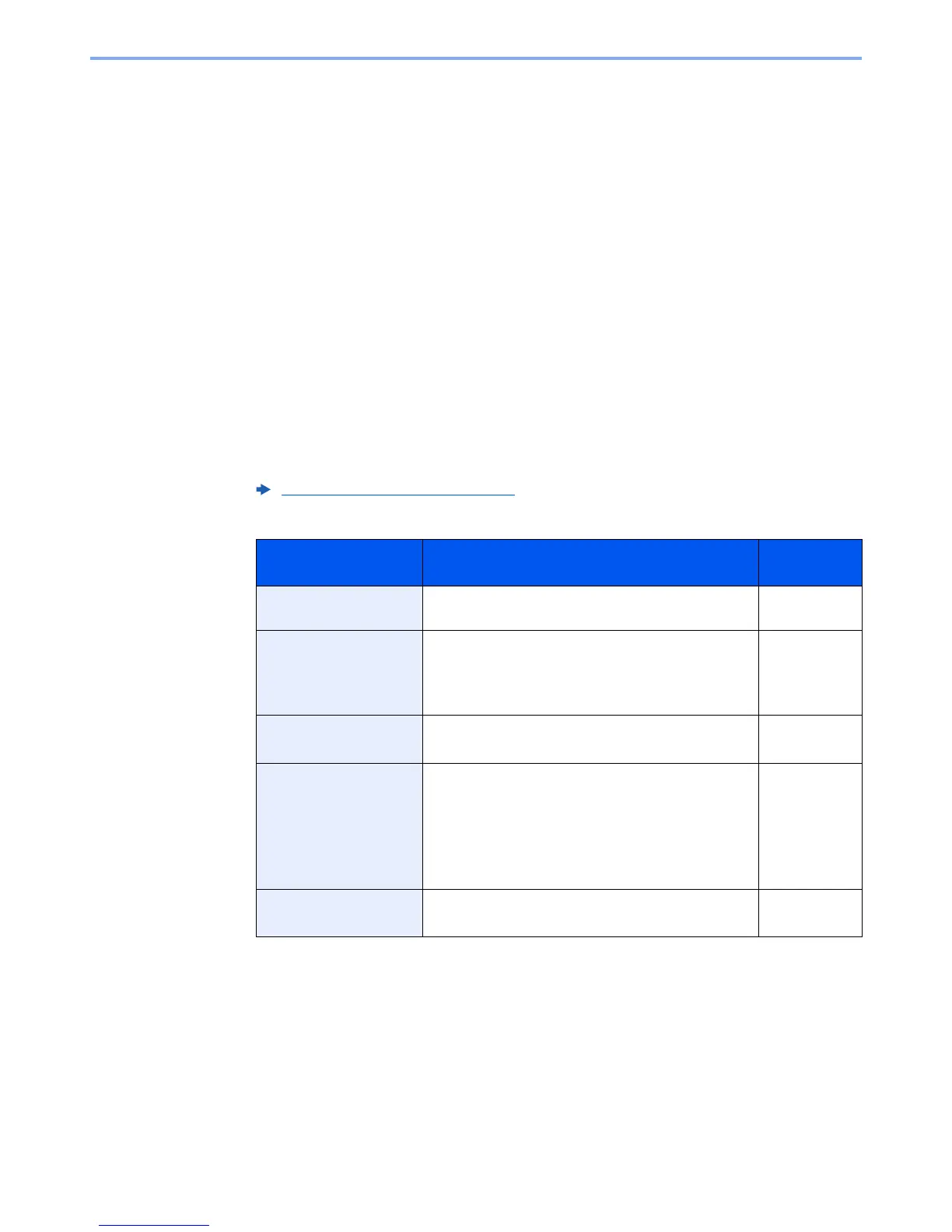The table below lists the items to be set.