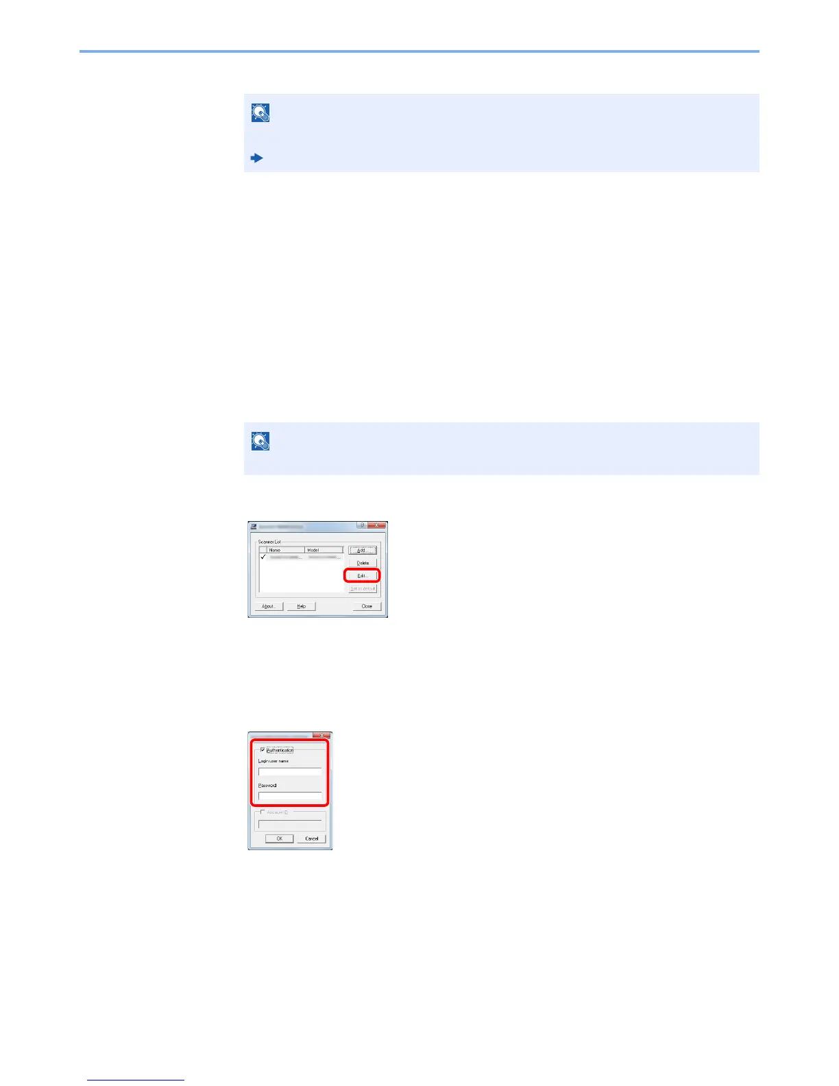To manage the users that scan using TWAIN, the following settings are necessary in the TWAIN driver.