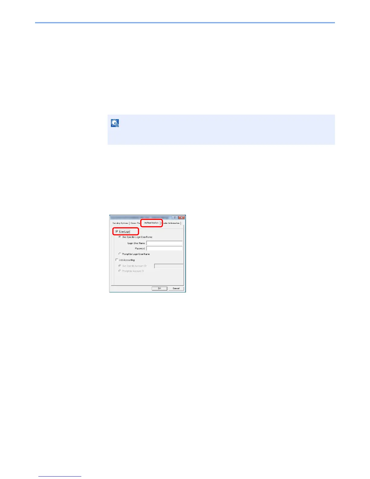To manage the users that send faxes from a PC, the following settings are necessary in the FAX driver.