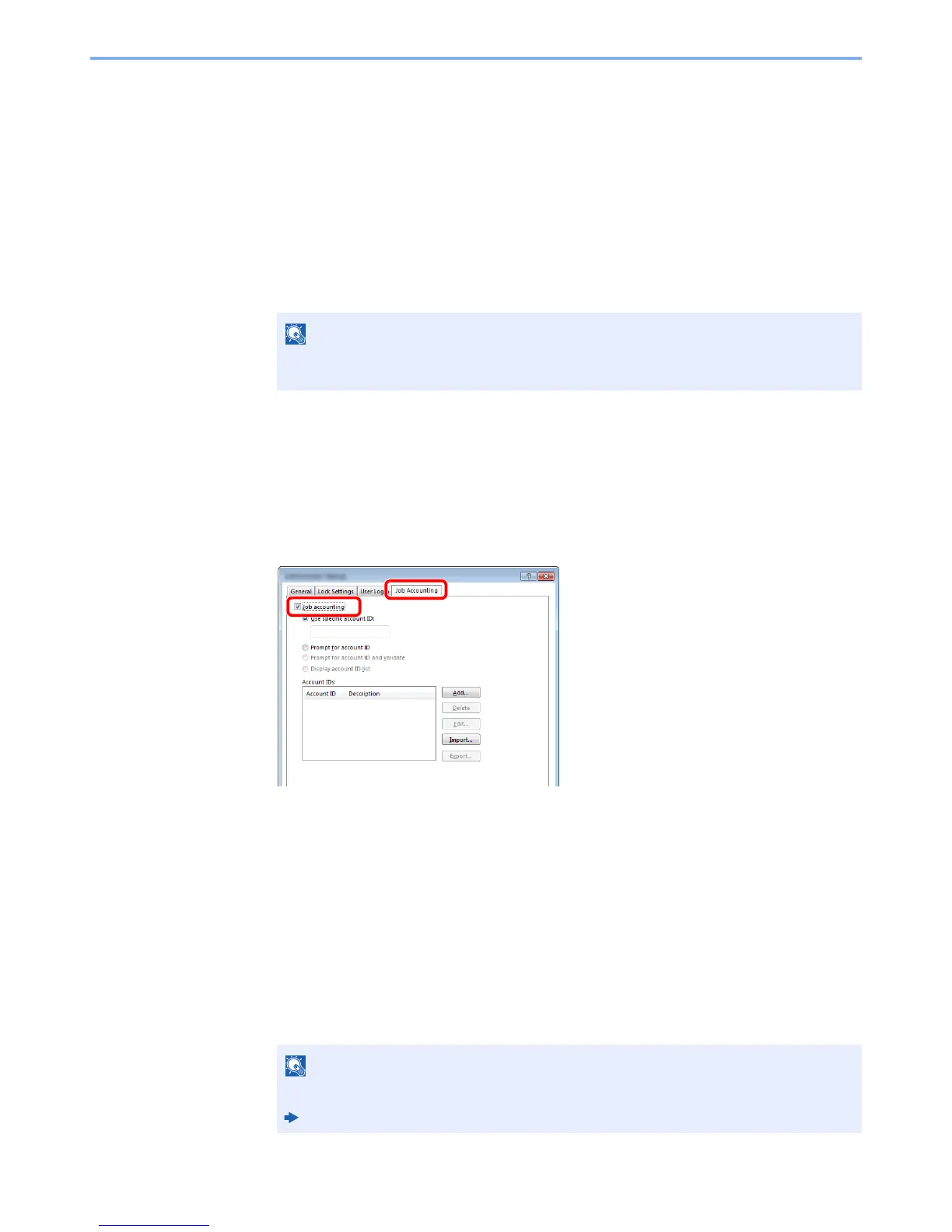 1 Select [Job accounting] on the [Job Accounting] tab.