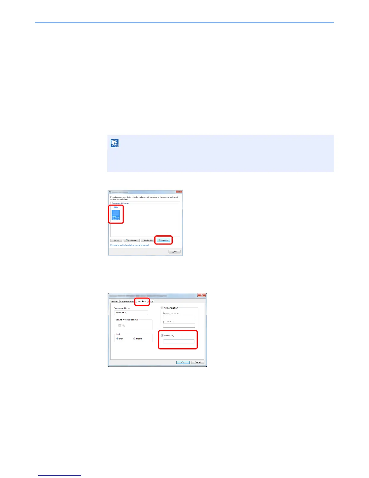 2 Select the same name as this machine from WIA Drivers, and press [Properties].