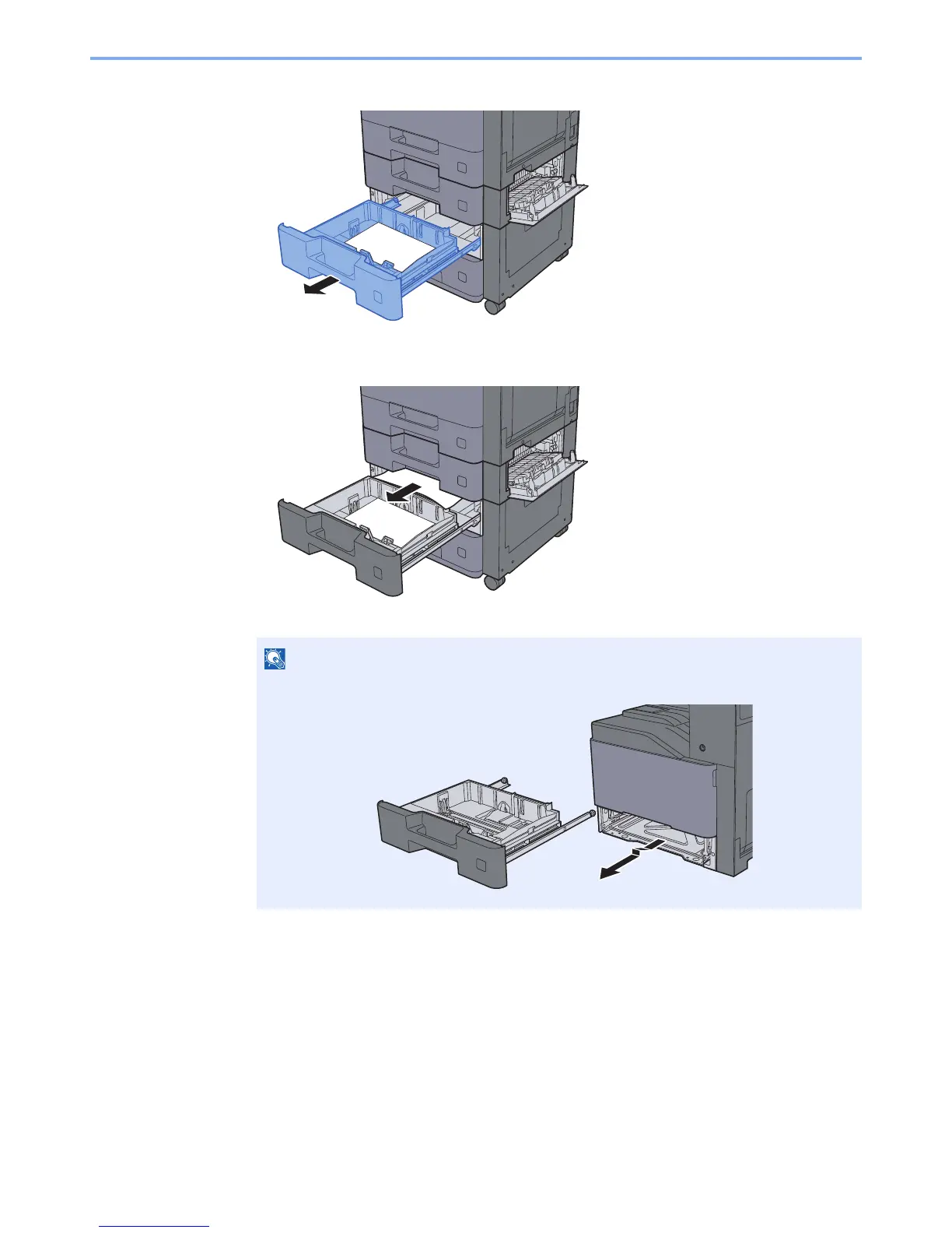To remove paper which is difficult to get access to, the cassette can be removed.