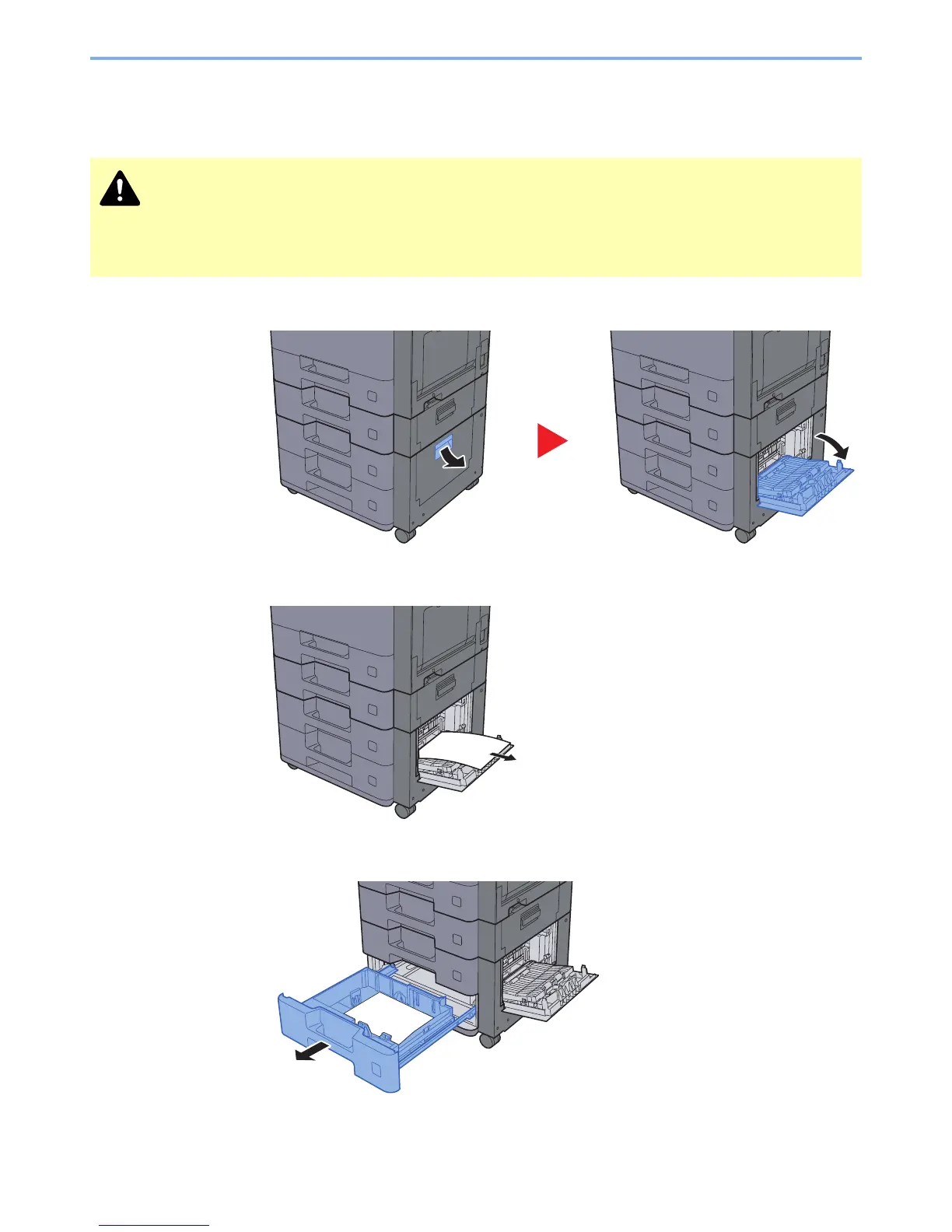 TASKalfa 306ci - Remove any Jammed Paper in Cassette 4 (500-Sheet X 2)