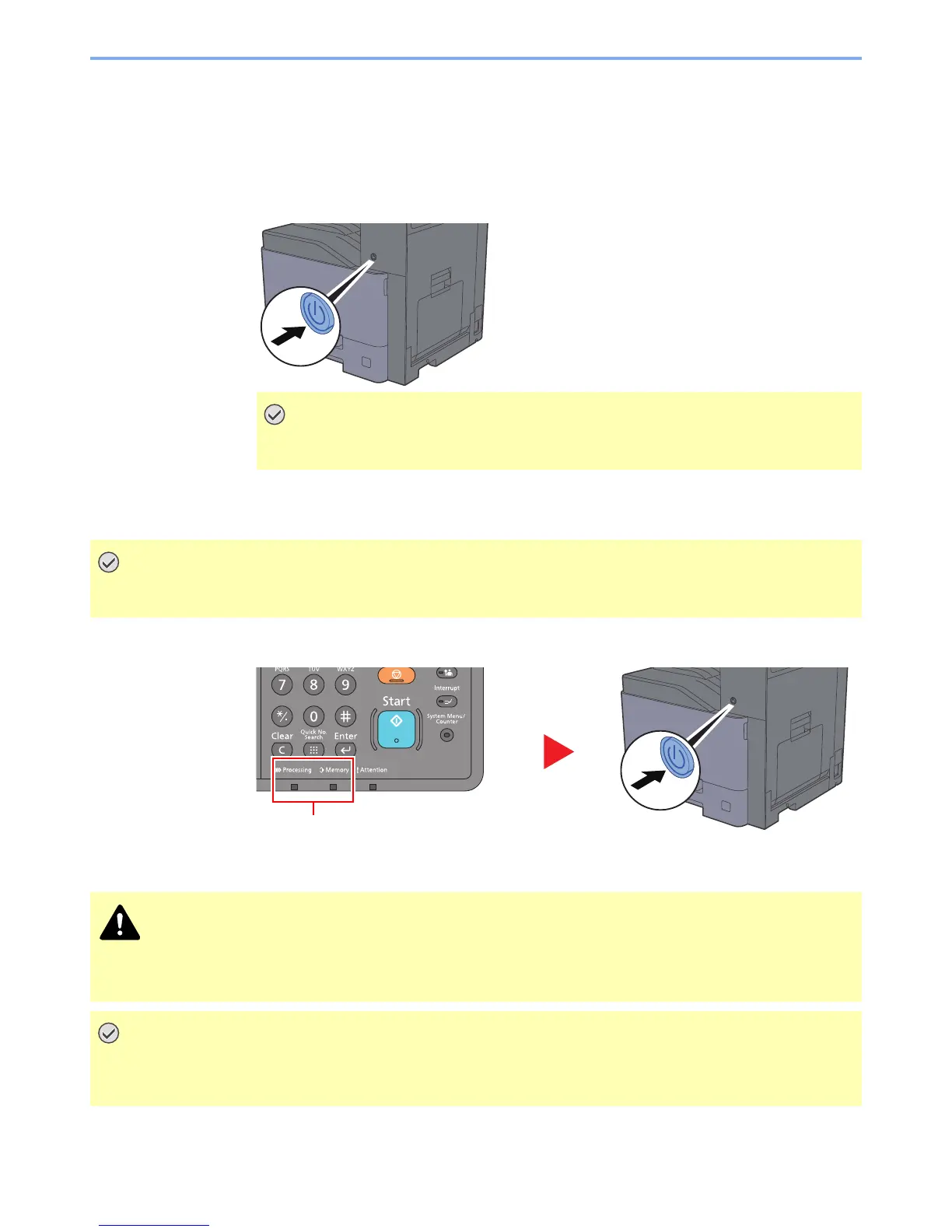 When the [Processing] indicator or [Memory] indicator is lit up or blinked, the machine is operating. Turning