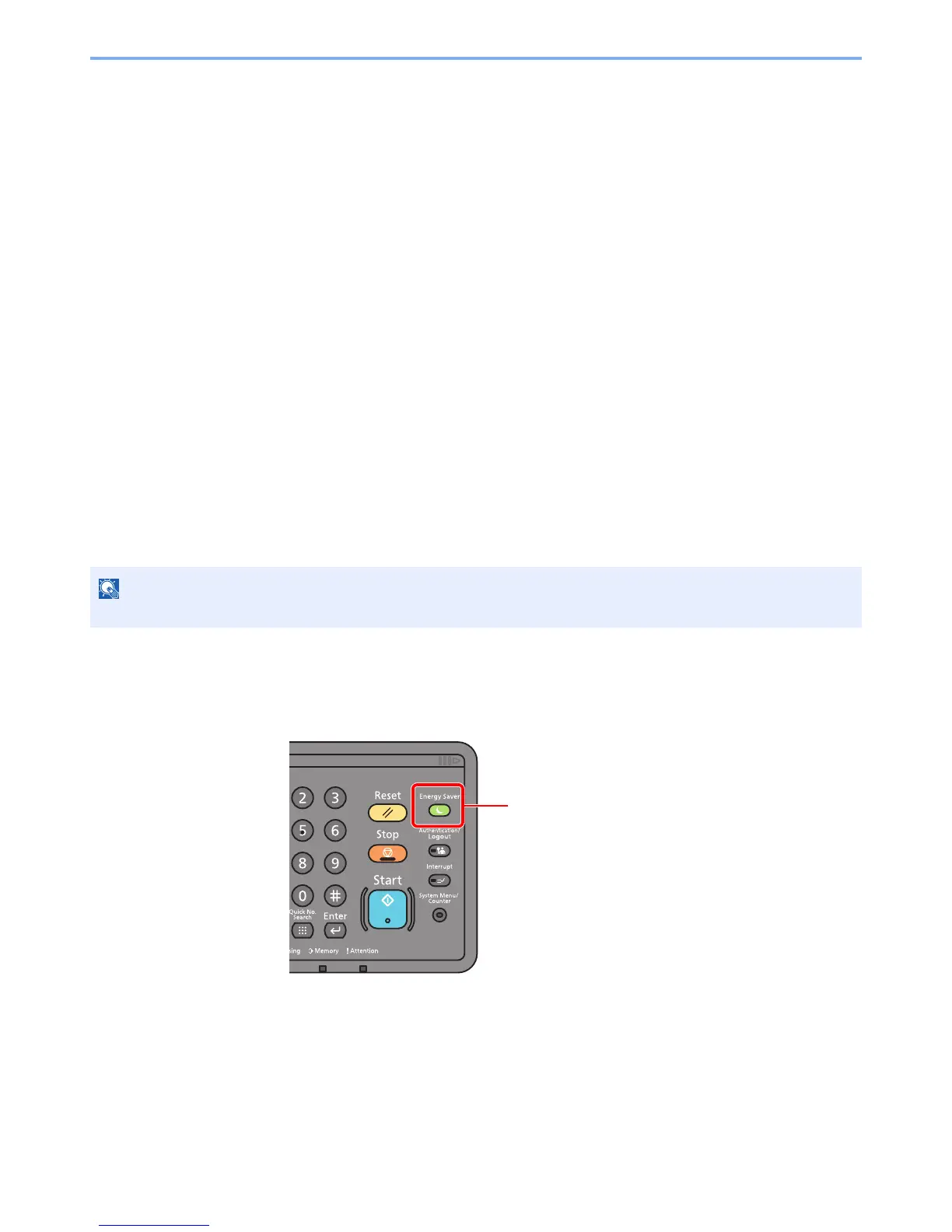 To enter Sleep, select the [Energy Saver] key. Touch panel and all indicators on the operation panel will go out to save