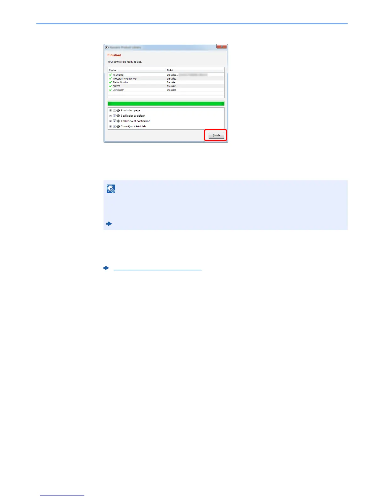 will appear after [Finish] is clicked. Configure the settings for options installed on the