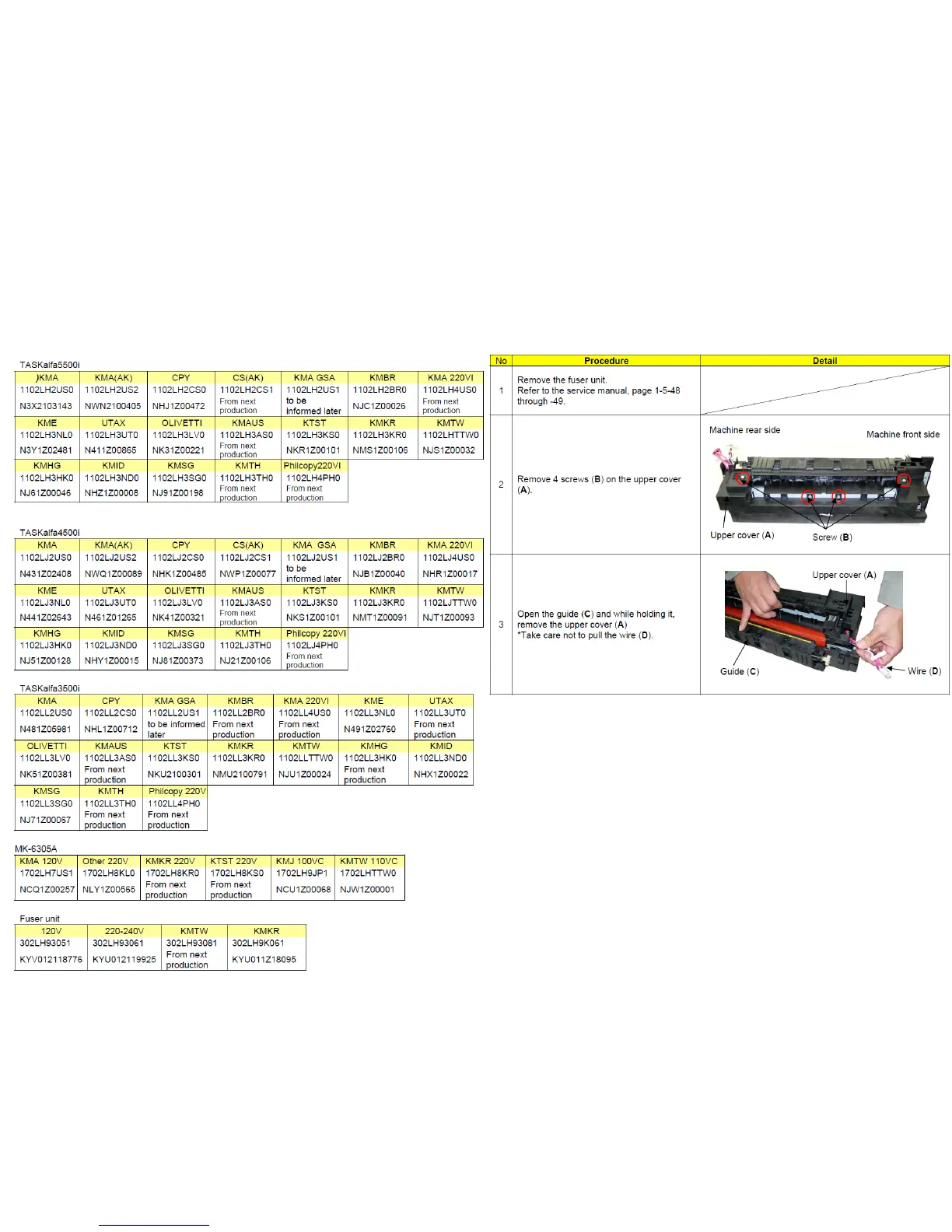 TASKalfa 3500i - Abnormal Sound from Fuser Section; Procedure: Replace Fuser Unit