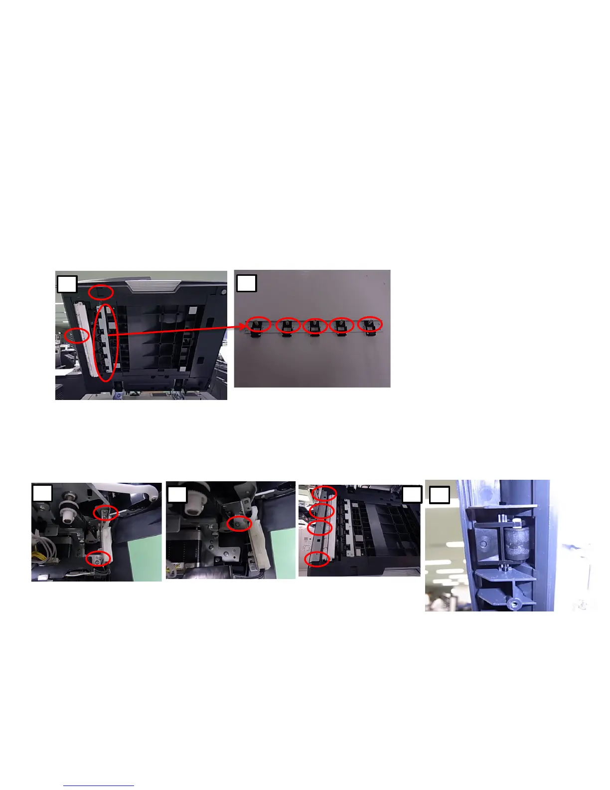 5. Remove all of original scan front pulleys (5 pcs) and springs (3303LL24120:SPRING PULLEY CONV