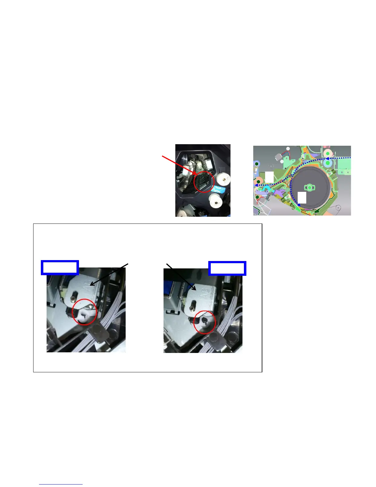 (a) The leading edge of paper is caught by the Feedshift guide 1
