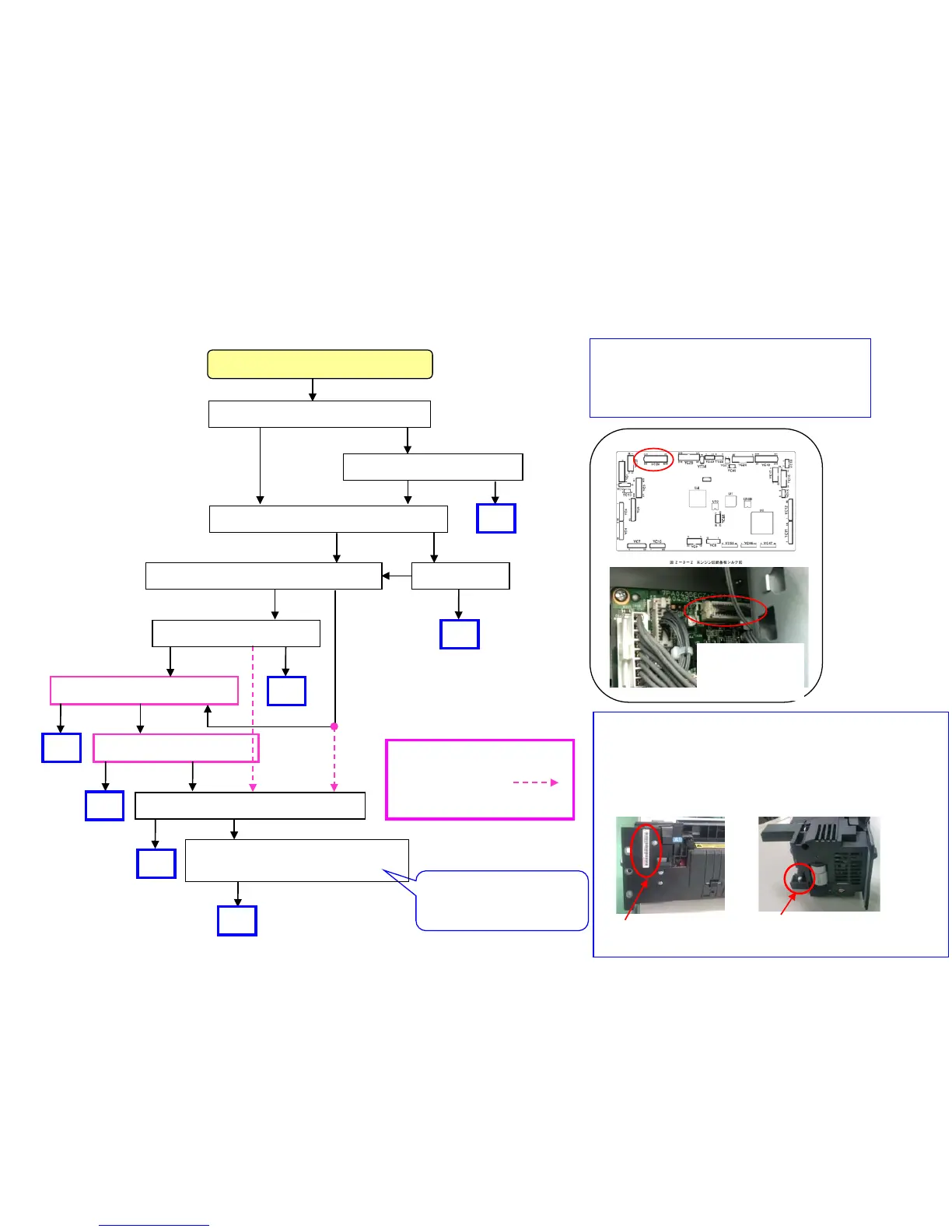 Check the fuser unit (left lower fig.) Re-connect