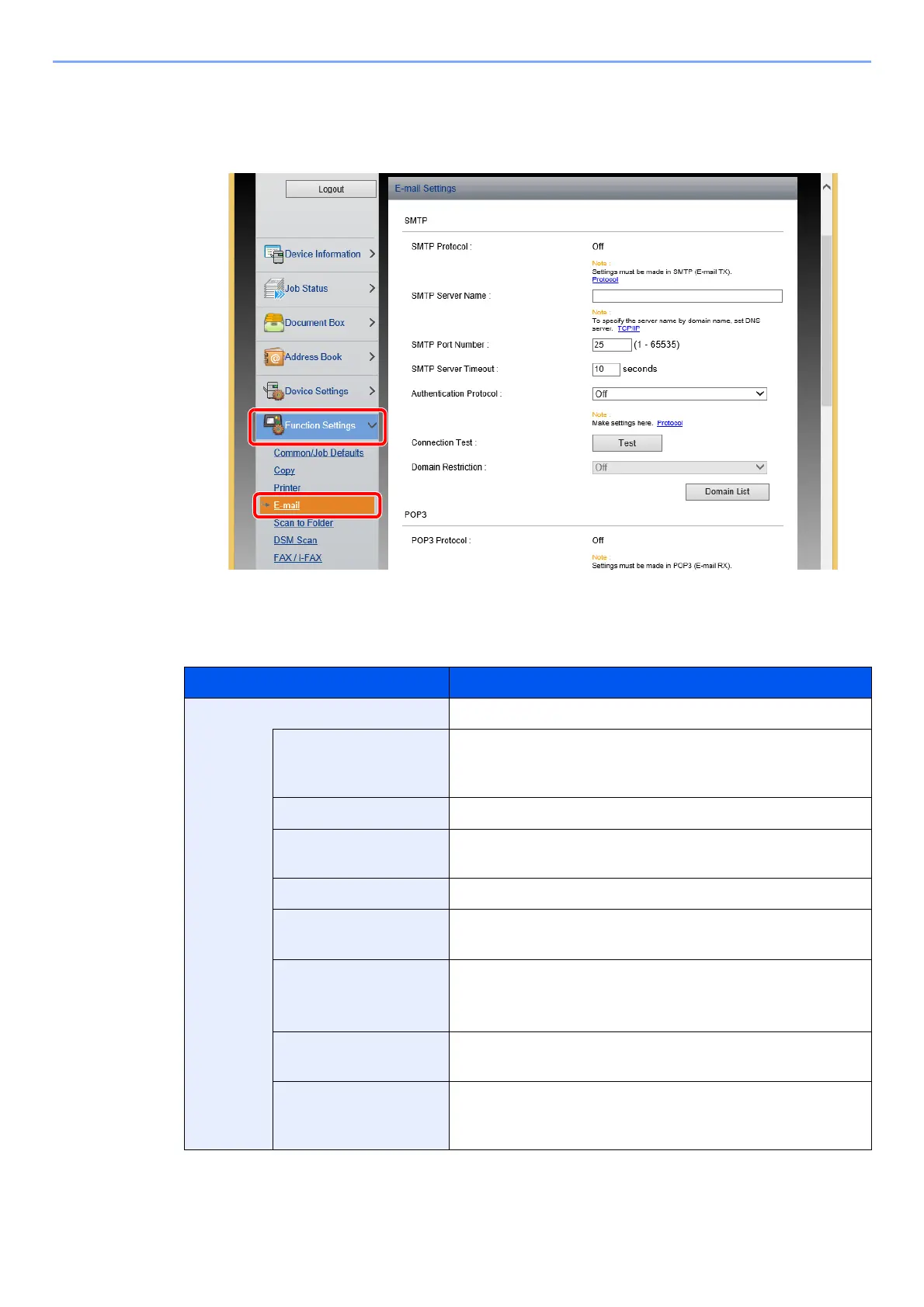 SMTP Protocol Displays the SMTP protocol settings. Check that "SMTP