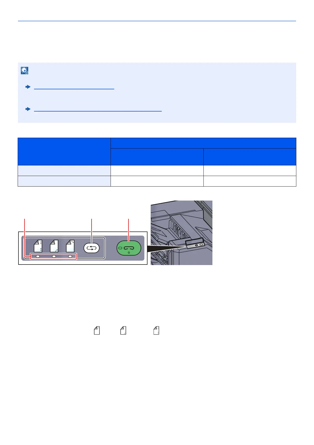 • If there are no staples when manual stapling is performed, the stapling position lamps and stapling position key