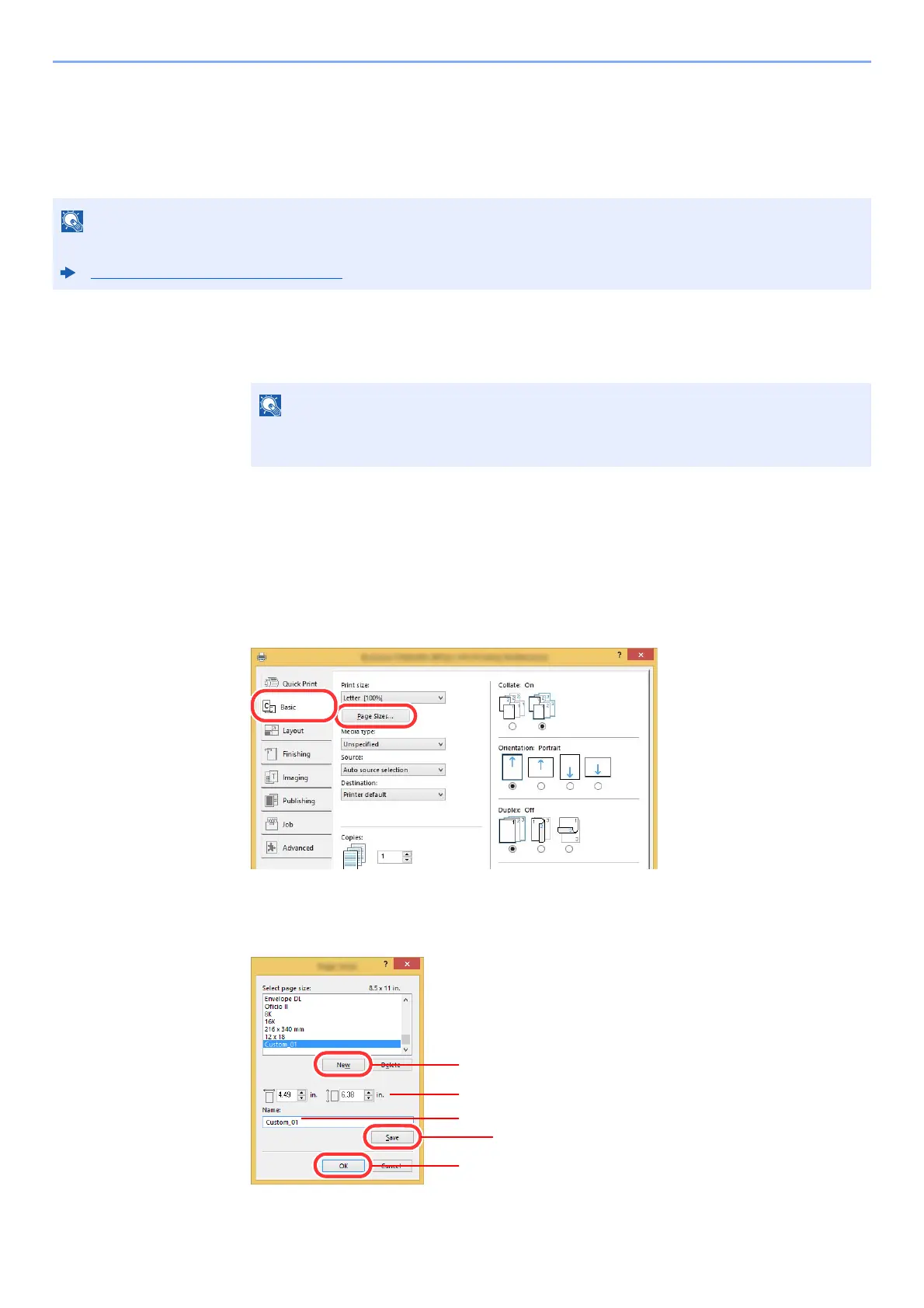 If you loaded a paper size that is not included in the print sizes of the machine, register the paper size in the [Basic] tab