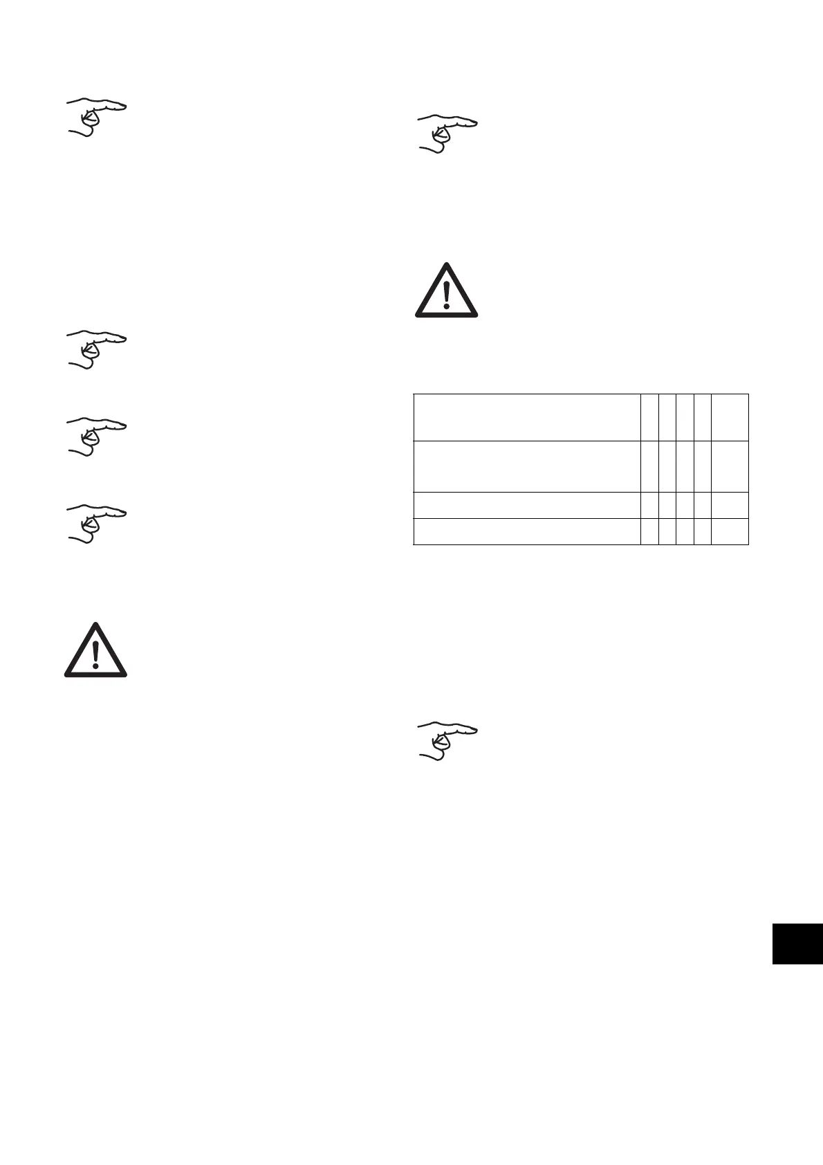 ◊ = Her temizlik sonunda, ◊◊ = her hafta,