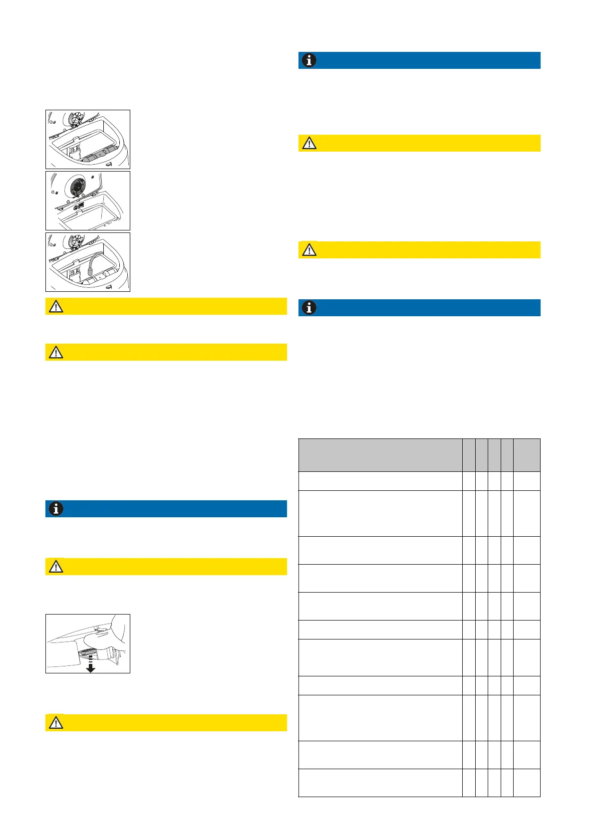 ◊ = Minden tisztítás végén, ◊◊ = hetente,