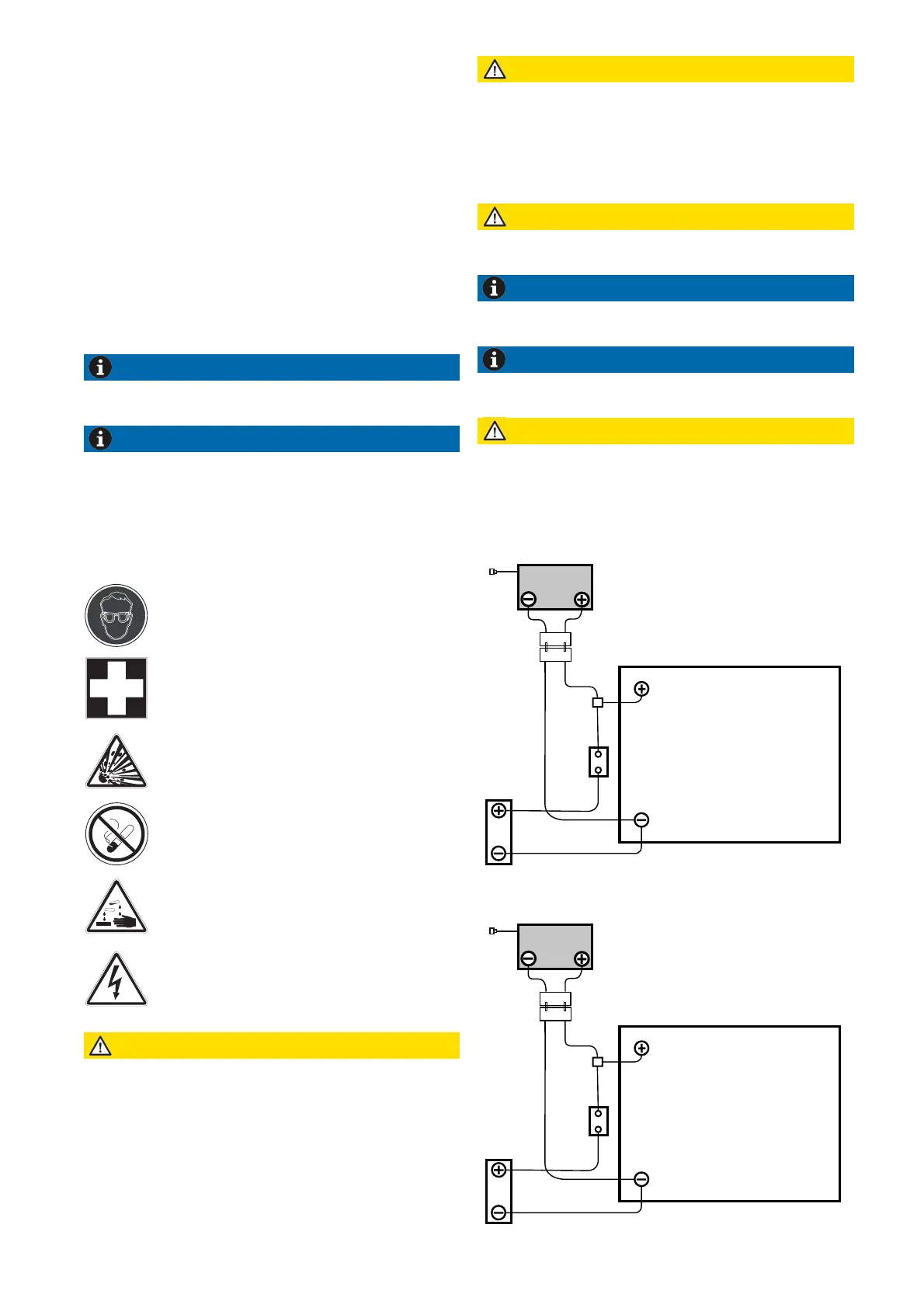 Batterien enthalten Säure. Bei der Wartung, bei Ein-