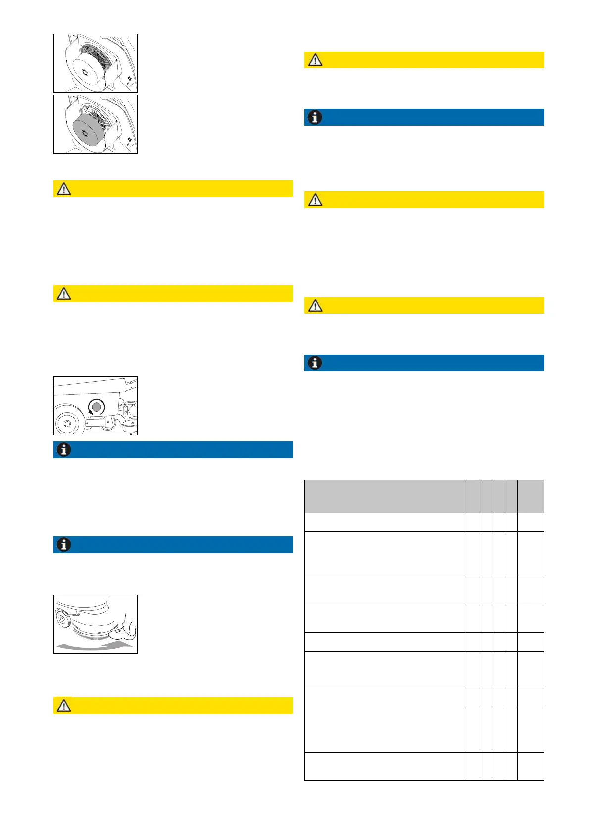 ◊ = Minden tisztítás végén, ◊◊ = hetente,