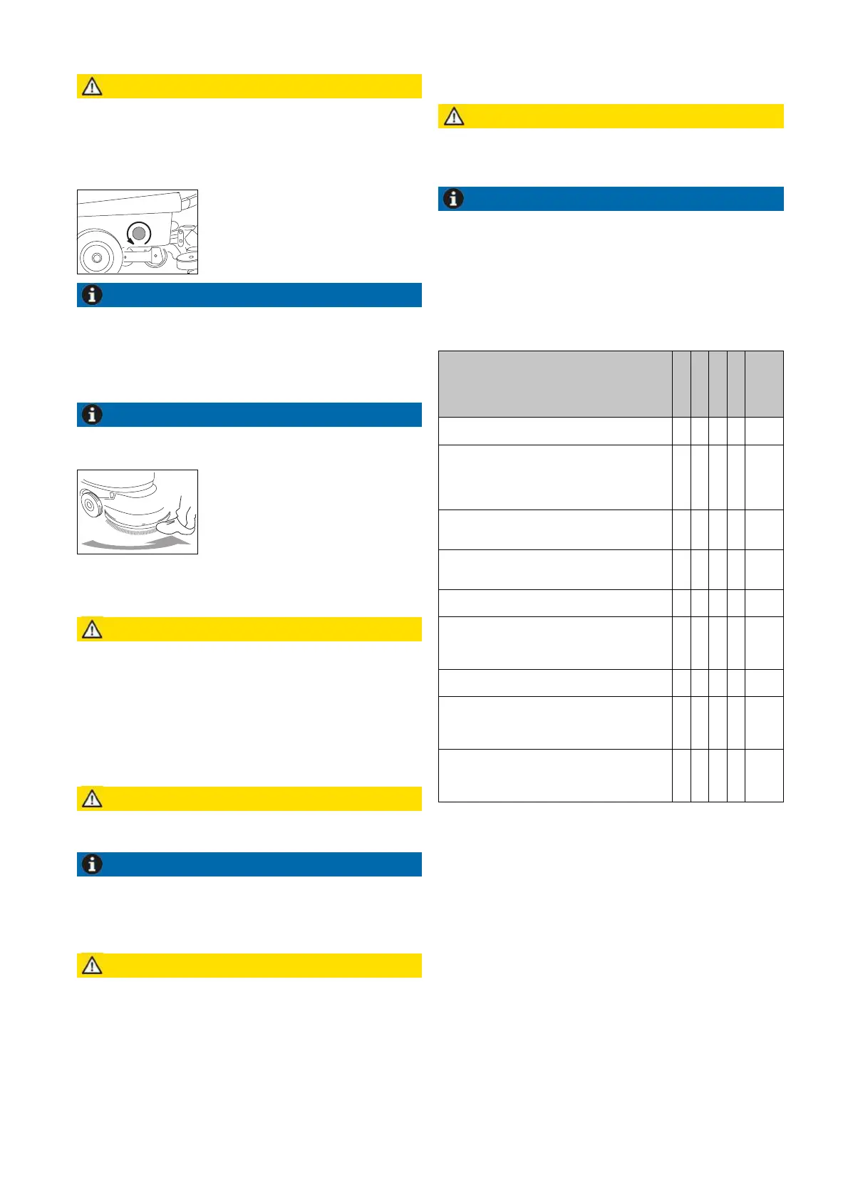 ◊ = kiekvieno valymo pabaigoje, ◊◊ = kiekvieną savaitę,