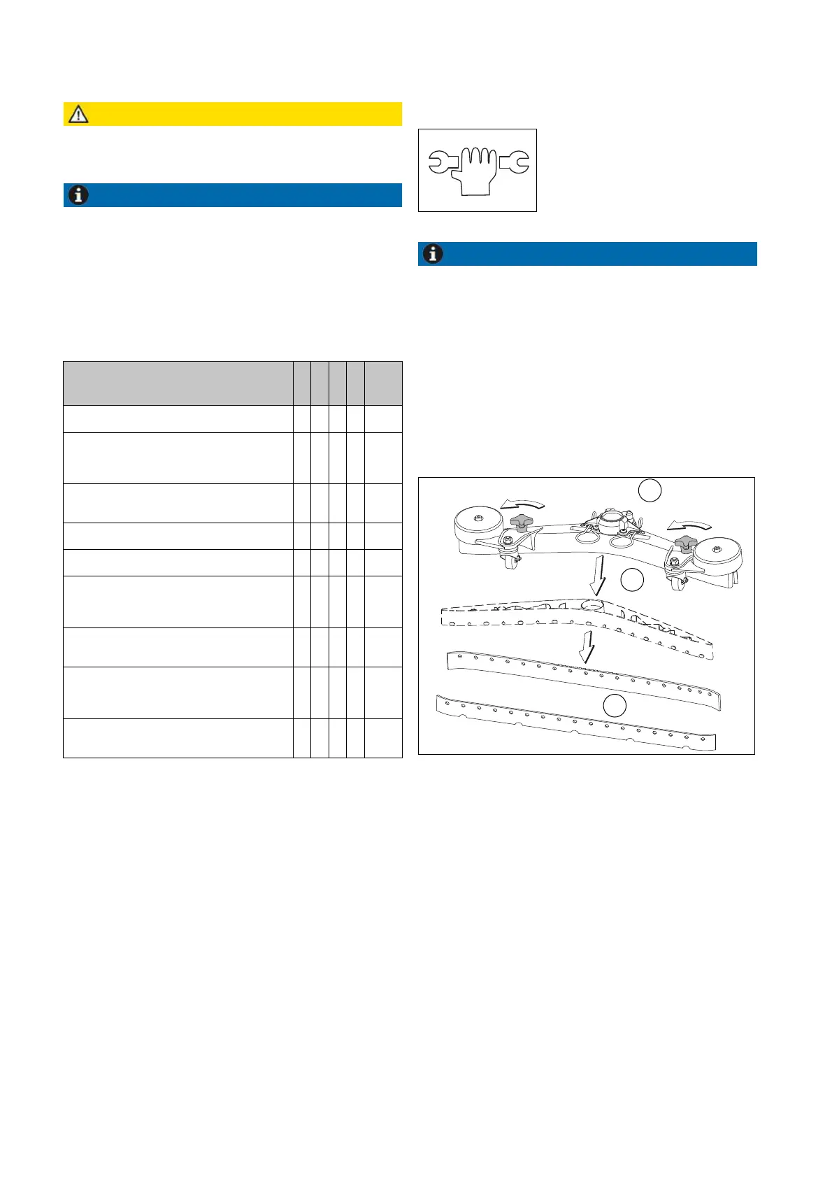 ◊ = Bei jedem Reinigungsende, ◊◊ = jede Woche,