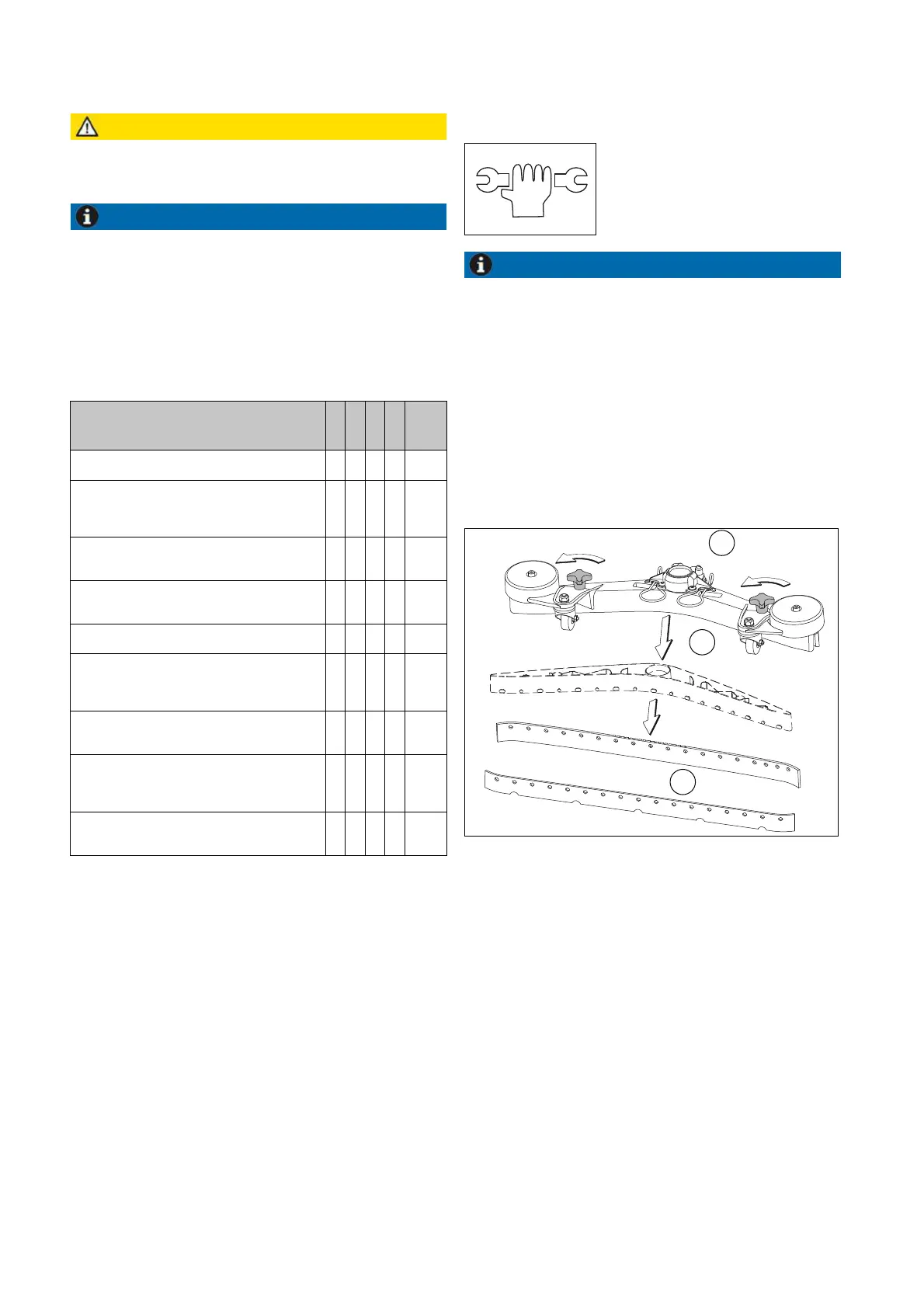 ◊◊◊ = chaque mois, ⊗ = service de lampe