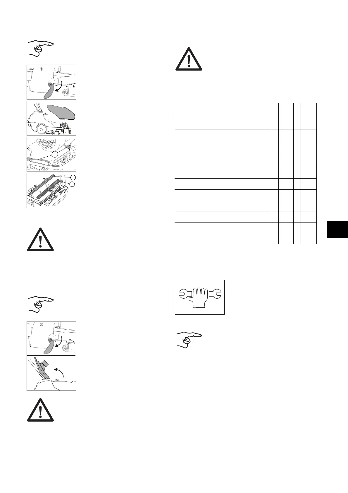 ◊ = kiekvieno valymo pabaigoje, ◊◊ = kiekvieną savaitę,