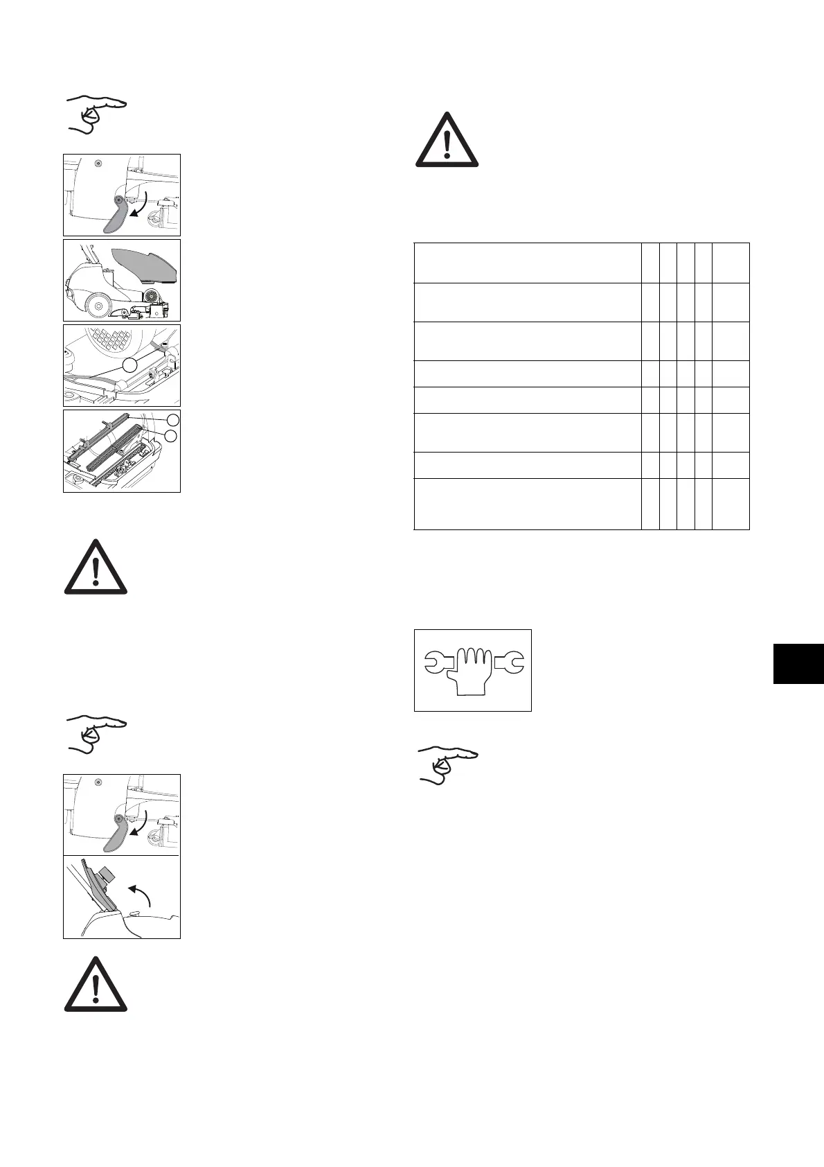 ◊ = etter hver rengjøringsøkt, ◊◊ = hver uke,