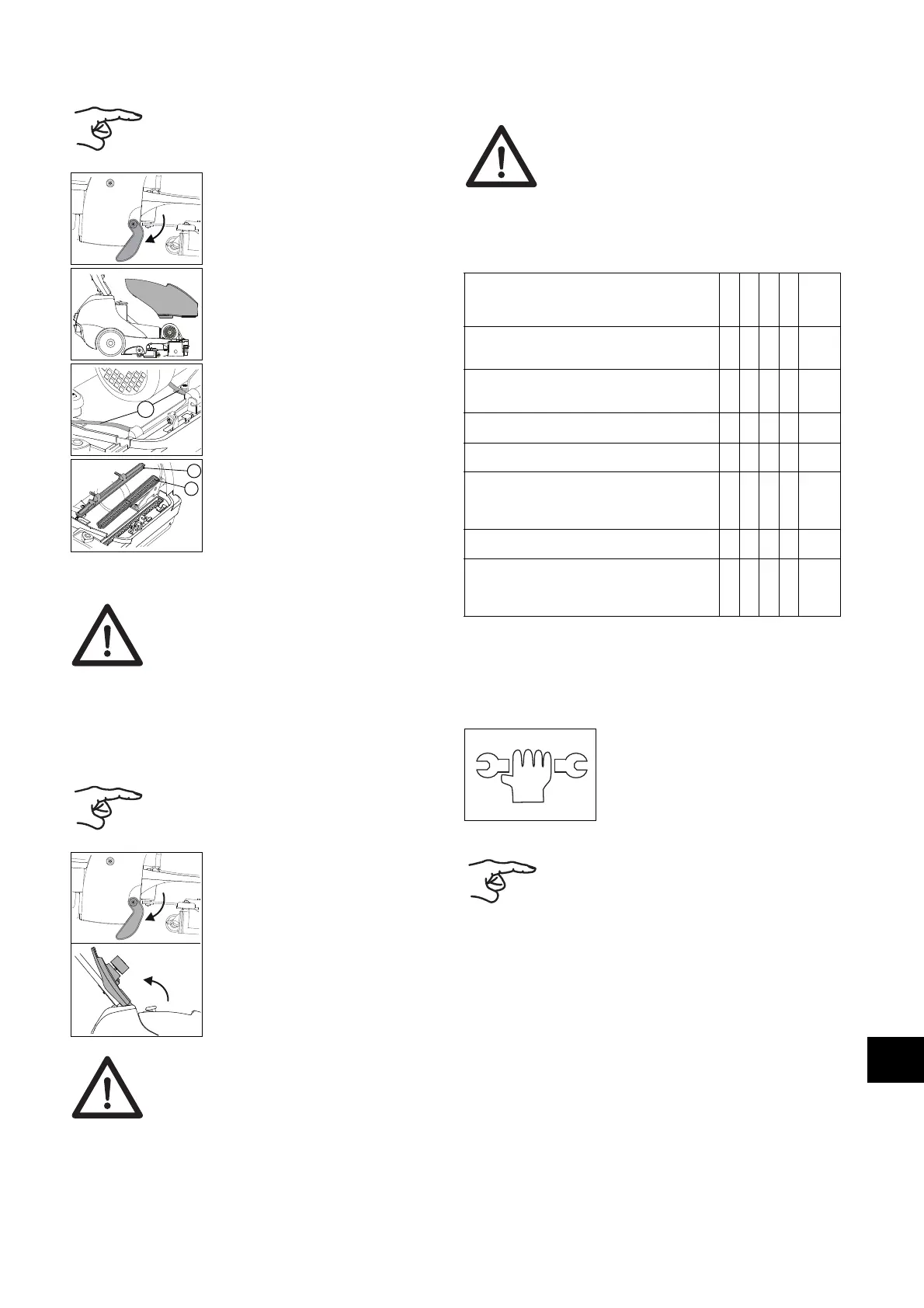 ◊ = Her temizlik sonunda, ◊◊ = her hafta,