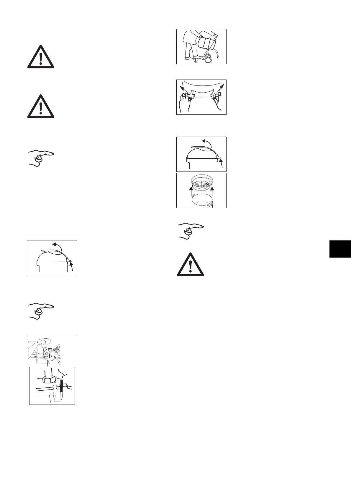 • Premere la leva e tirare via il tubo aspirazione dalla presa