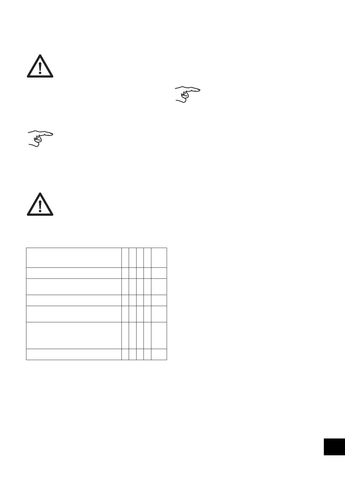 ◊ = Her temizlik sonunda, ◊◊ = her hafta,