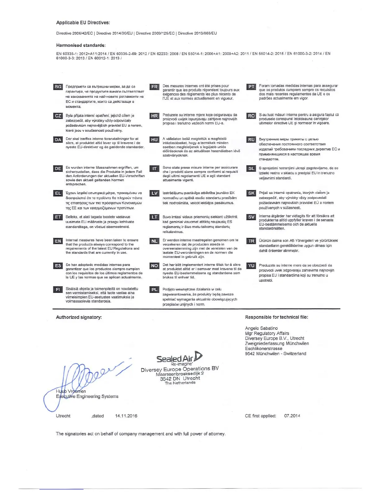 Taski vento 15S - Applicable EU Directives and Standards; Authorized Signatory Details; Documentation Responsibility