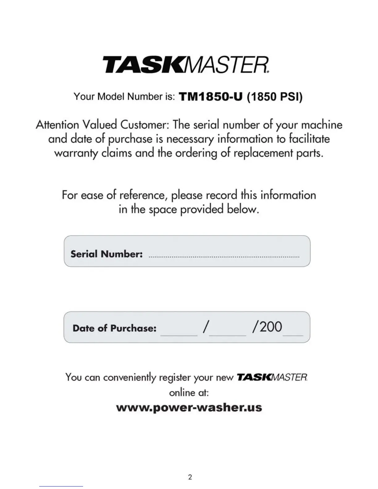 TASKMASTER TM1850 - Page 2