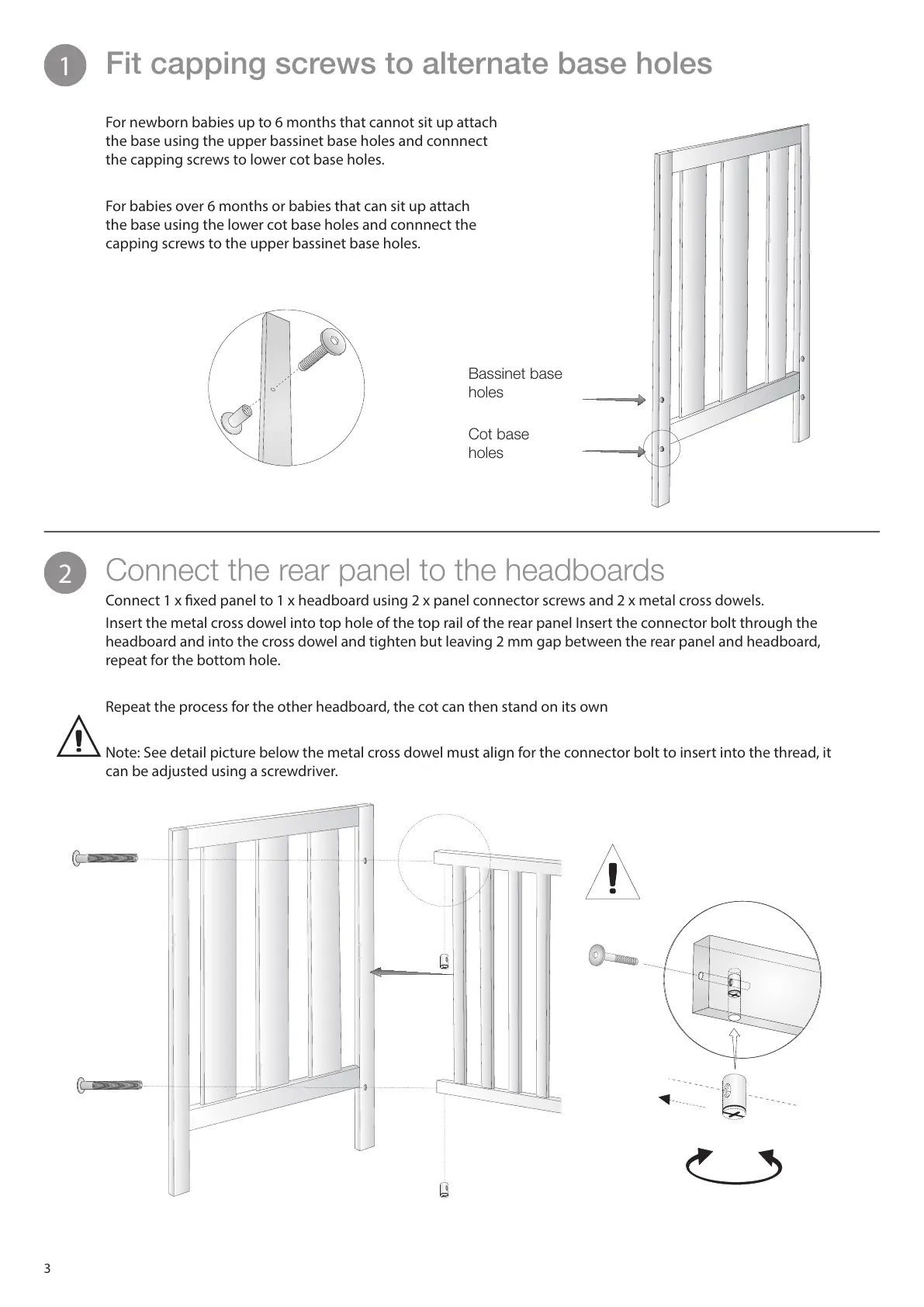 headboard and into the cross dowel and tighten but leaving 2 mm gap between the rear panel and headboard,