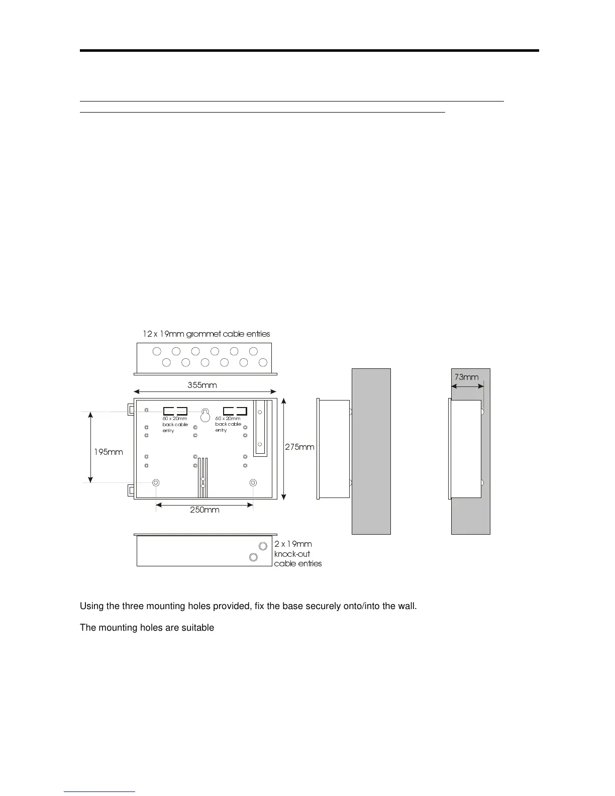 It is essential that the 230Va.c. Mains cable is fed into the enclosure via one of the inlets at the top