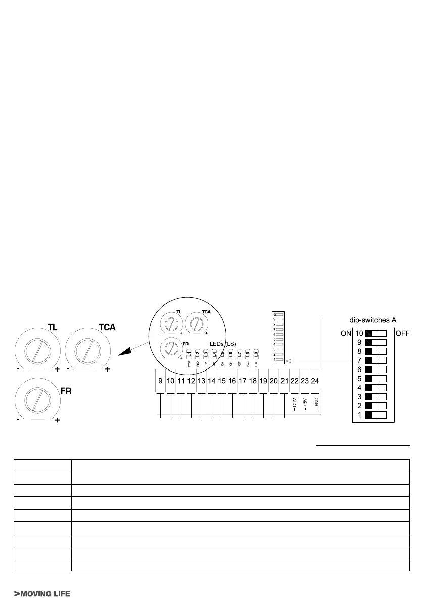 9 on: während der Öffnung spricht die Fotozelle an und stoppt das Tor bis zur Beseitigung des