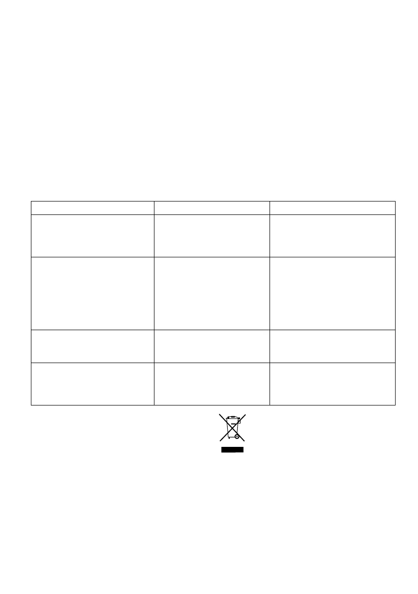 - Raadpleeg de onderstaande tabel bij proble-